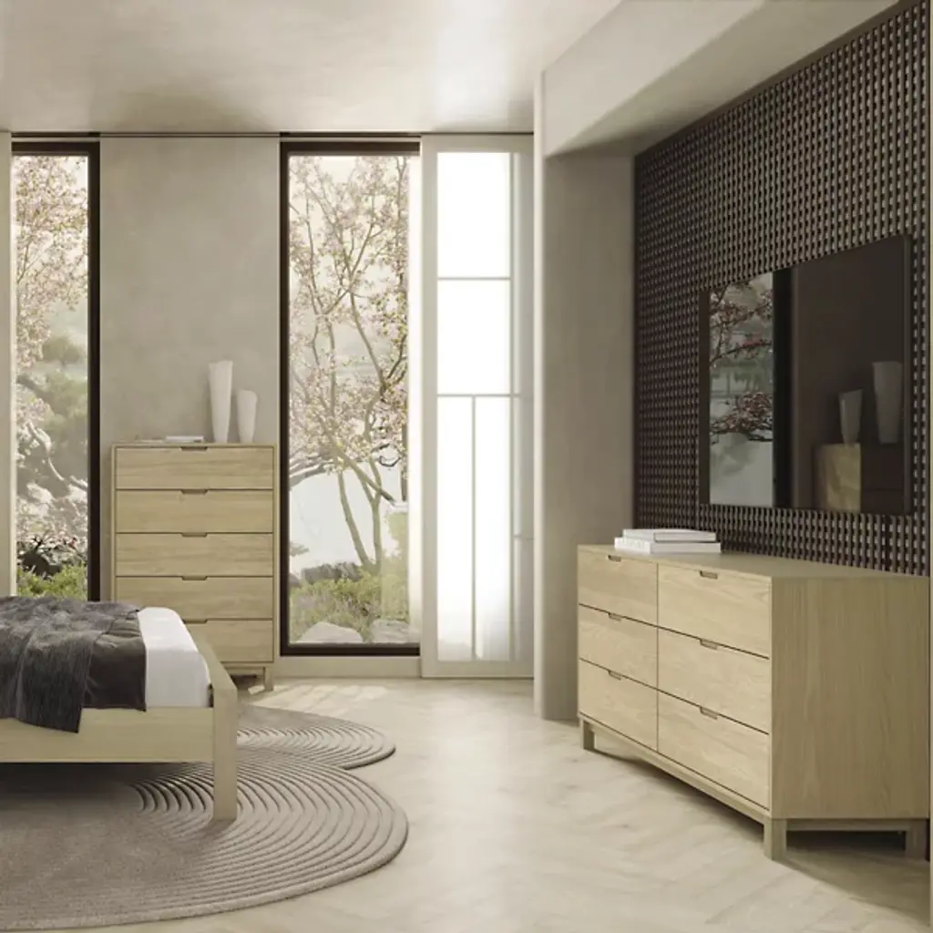 The Oslo 6 Drawer Dresser from Copeland Furniture combines an elegant modern design with sophisticated, high-quality handmade construction with elegant traditional design features like visible joinery that displays quality in an understated manner. This six-drawer design offers extraordinary storage with style, featuring cutaway pulls and cool natural finish tones in low-chemical emission GREENGUARD material. It's a bold Danish modern centerpiece for bedroom sets, especially when paired with other Oslo series favorites.