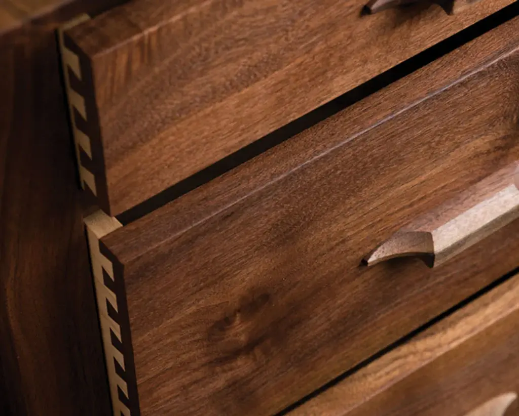 The Pacific 9-Drawer Dresser is inspired by Japanese architectural details. With a beatiful reverse taper to the legs, and the large overhang, the Pacific dresser style coordinates with our Live-edge bed frame or the Saporro bed frame. This dresser features The Joinery's own handcrafted Yoshinaga pull. For additional knob and pull options please contact us here.