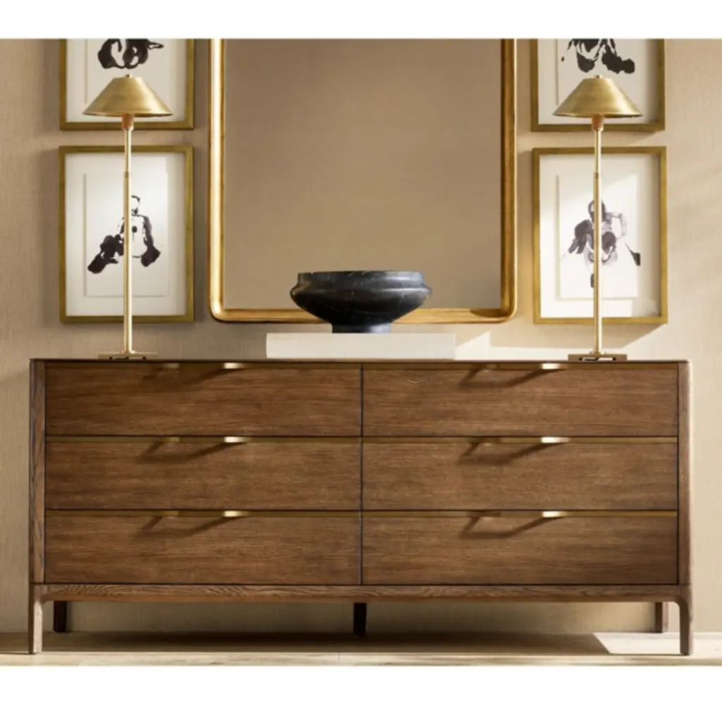 Exquisite workmanship and refined restraint characterize our collection by the Van Thiels. Spare and sculptural, each geometric form is simplified to its functional essence – a harmonious interplay of straight lines and gently rounded corners. Slender, sinuous metal hardware provides an elegant counterpoint to the warmth of richly grained American oak veneers. SHOP THE ENTIRE COLLECTION