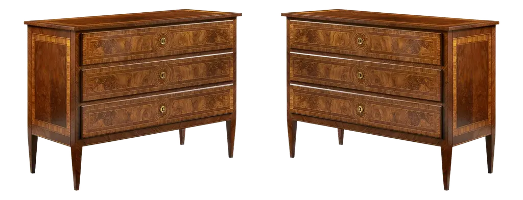 Pair Of Italian Neo Classic Three Drawer Commodes