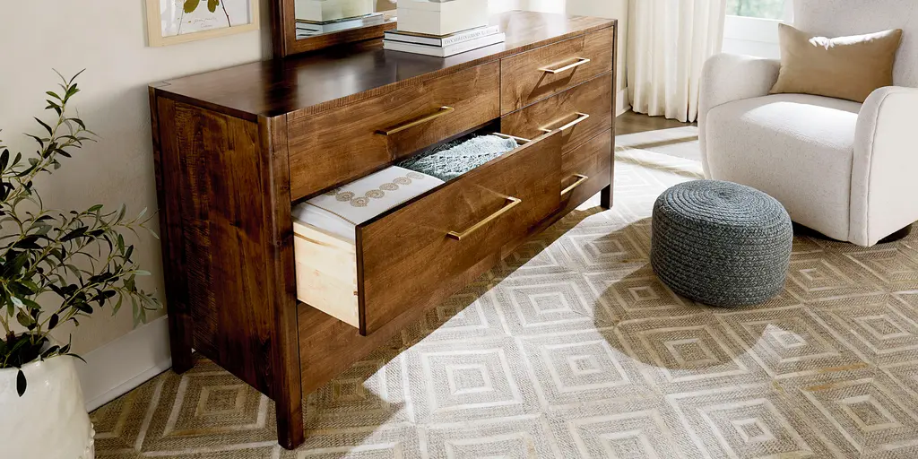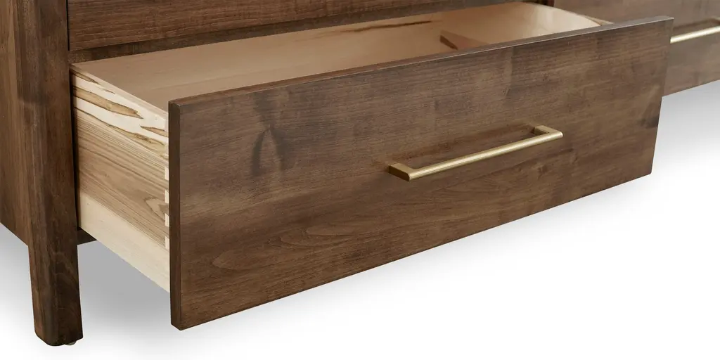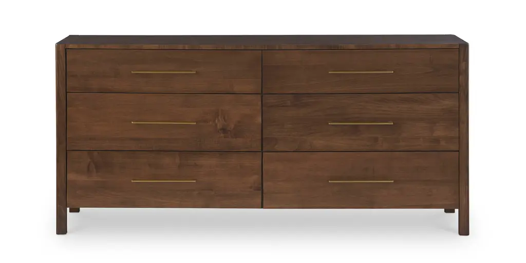 Add the clean lines and modern presence of the Parkway 6-Drawer Dresser to your contemporary sleep sanctuary. The dresser's spacious surface allows you to style it to suit your taste and needs, making it an incredibly adaptable piece of furniture. Deep, soft-close drawers offer plenty of clothing and linen storage. Hand-crafted construction of solid silver maple promises heirloom longevity and can be hand finished in your choice of Lucent or dark Tobacco. Additional Cast & Forge drawer pull options to custom-style your Parkway Dresser are available in store.