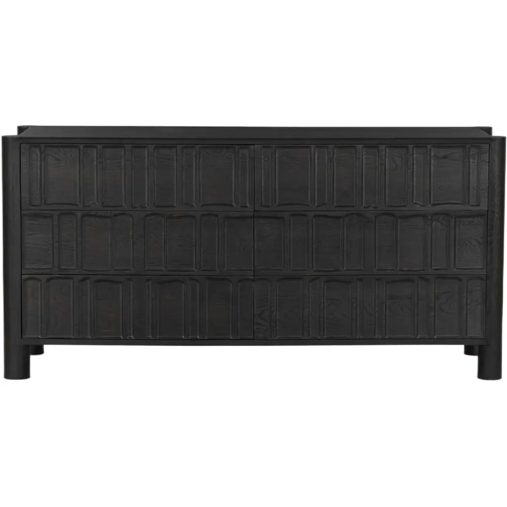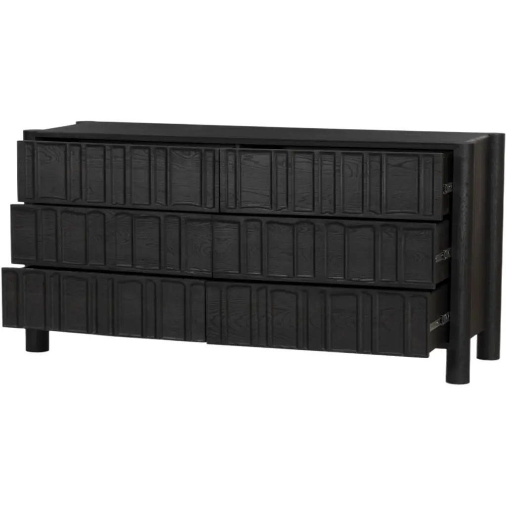 The Percy 6 Drawer Dresser is a stunning piece that combines organic carving with sleek cylinder legs, creating a primitive yet sophisticated look. Crafted from oak, each dresser showcases unique character through the natural variations in the wood's grain, ensuring that no two pieces are alike. This dresser is a perfect blend of artistry and functionality, making it a standout addition to any room.