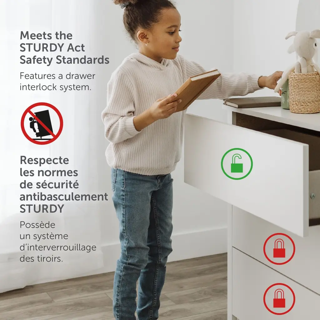 NOTE: AFW does not stock or assemble this item. This will ship to your address via FedEx. Assembly is requiredThis Primo 5-drawer dresser has a timeless look and blends in easily with any decor. The contemporary lines are softened by the curved kick plate, and metal handles add character and value to the furniture. The neutral, modern style makes it suitable for men’s or women’s, providing plenty of storage space in this attractive piece of furniture.