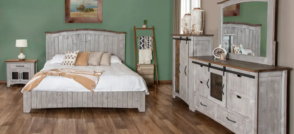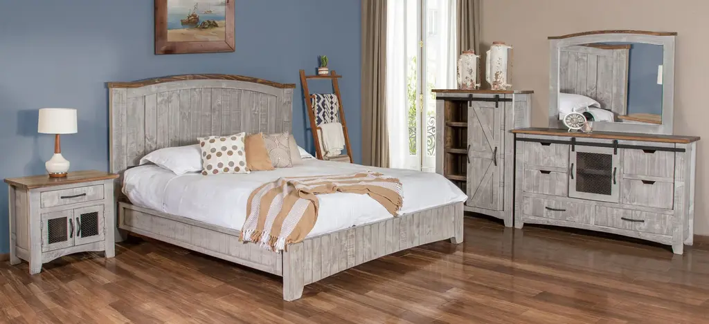 Updated casual farmhouse best describes this beautiful solid pine Pueblo chest. With it's rustic yet casual appeal, we mix old with new and construct the product using the time honored tradition of Mortise and tenon construction, along with preimum full extension metal ball-bearing drawer glides guaranteeing you have years of worry free use.