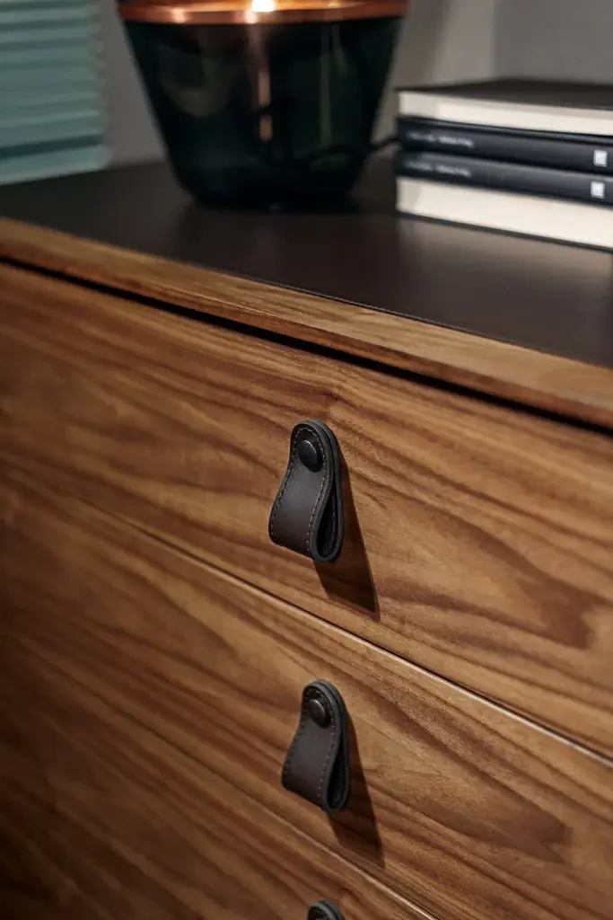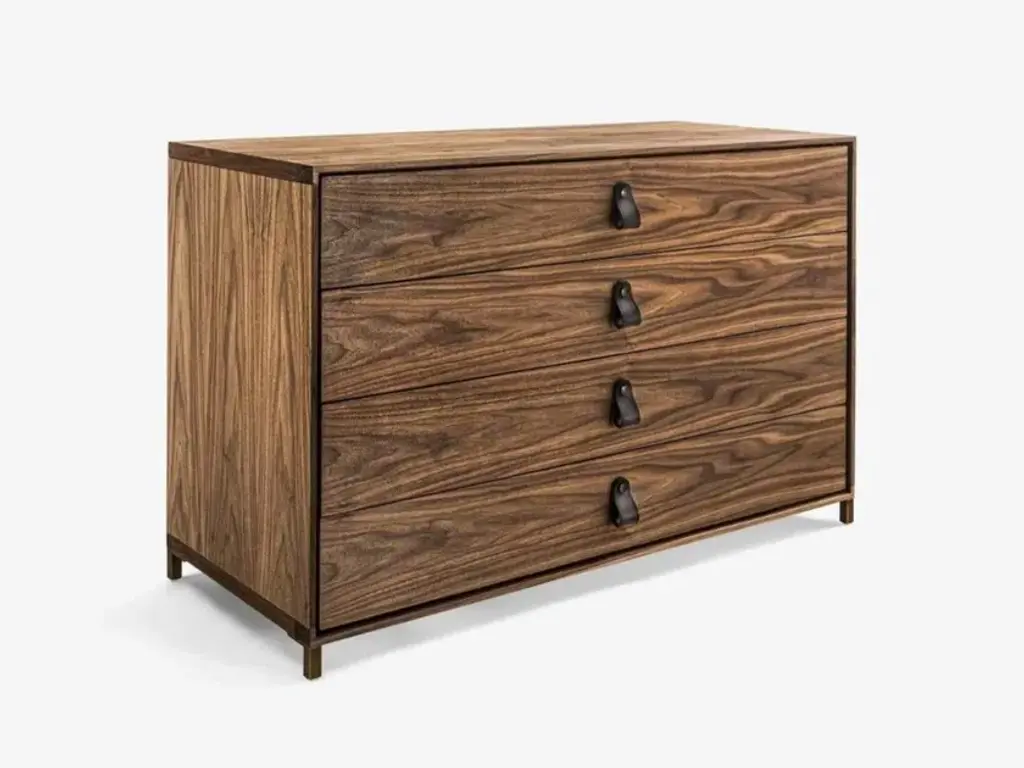 RIALTO FLY NIGHT DRESSER is a chest of drawers in blockboard and solid wood, with wooden frame and 4 drawers assembled with traditional dovetail joints.STANDARD VERSION: DRAWERS WITH PUSH-PULL SYSTEM, ON METAL RUNNERS; IRON SMALL FEET LACQUERED IRONDUST COLOUR (B2)AVAILABLE FINISHES:A1: walnut without knots, walnut with knotsA2: oak without knots, oak with knotsAVAILABLE FINISHES - FEETB2: lacquered iron: irondust, RAL (selected colours only)B3: matt brushed lacquered iron: antique bronze, steel, titaniumAVAILABLE FINISHES - FRONTSA1: walnut without knots, walnut with knotsA2: oak without knots, oak with knotsA6: briccola