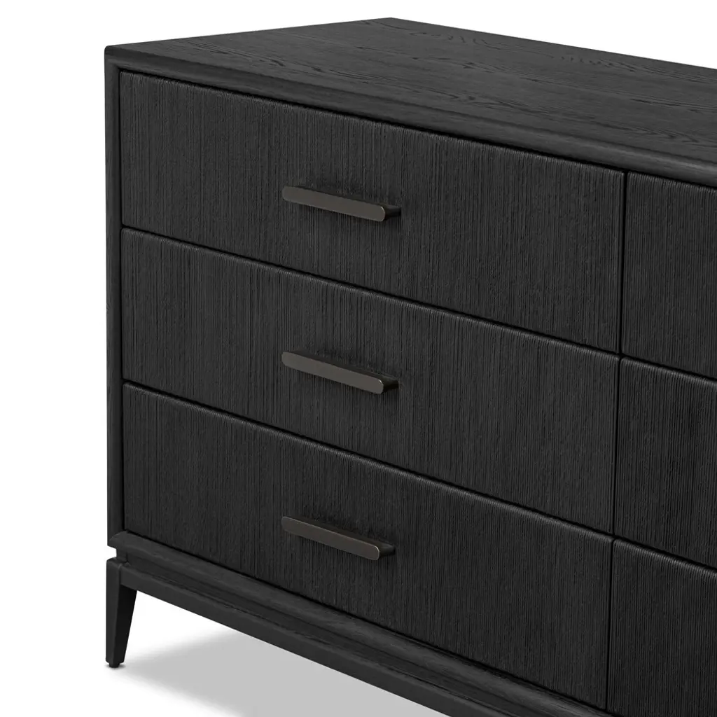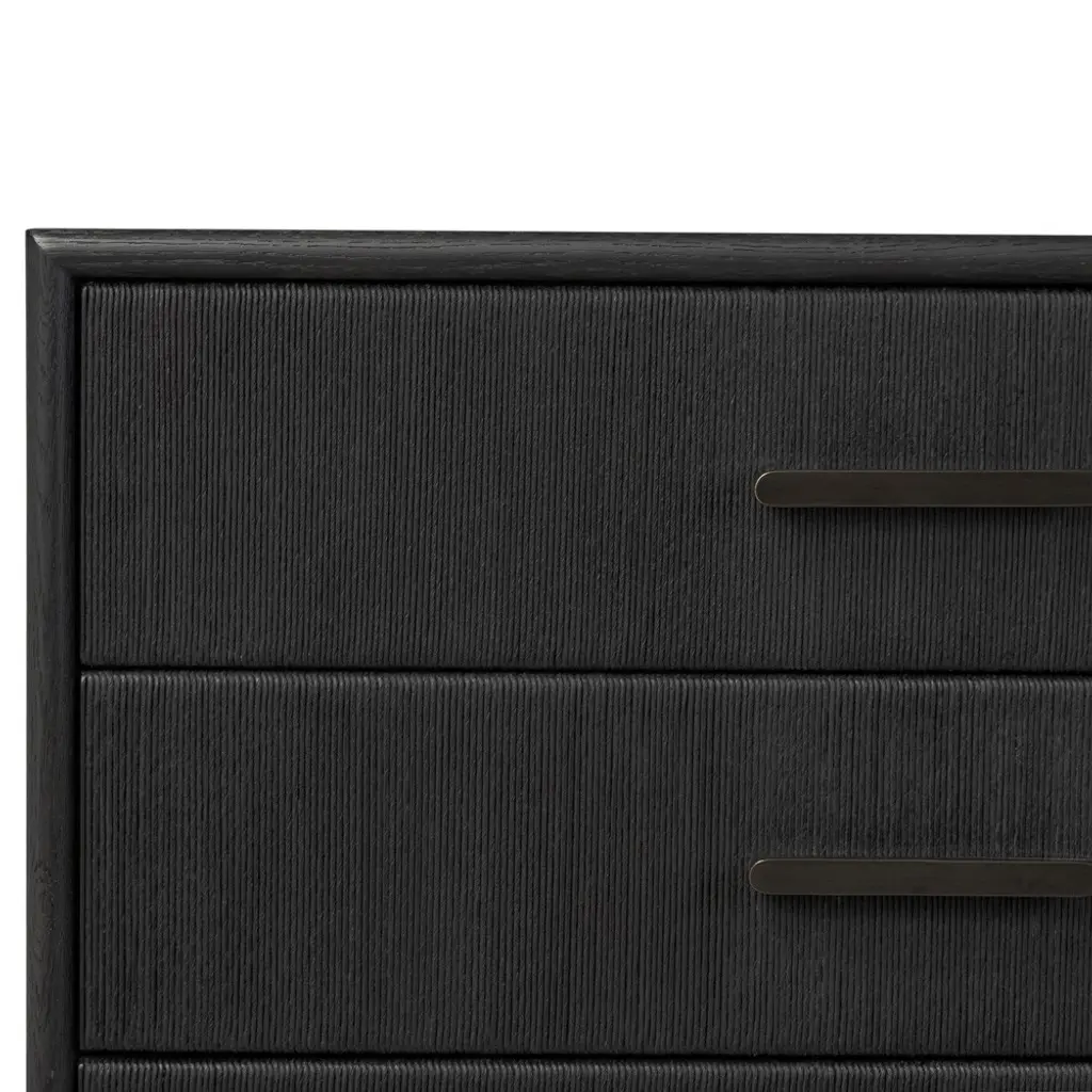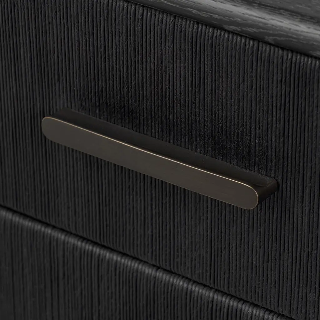 Rosal Modern Classic Black Oak Woven Rush Double Dresser