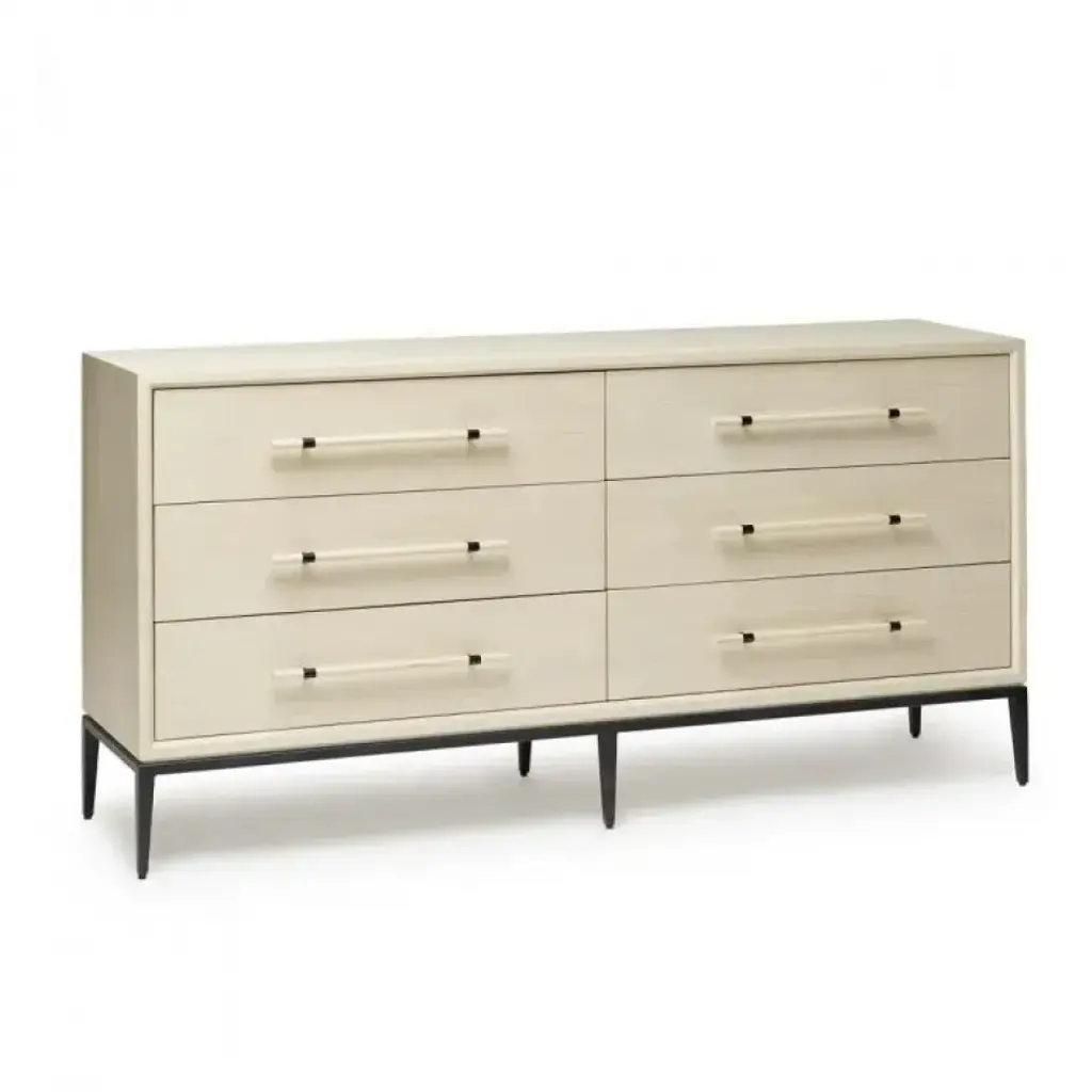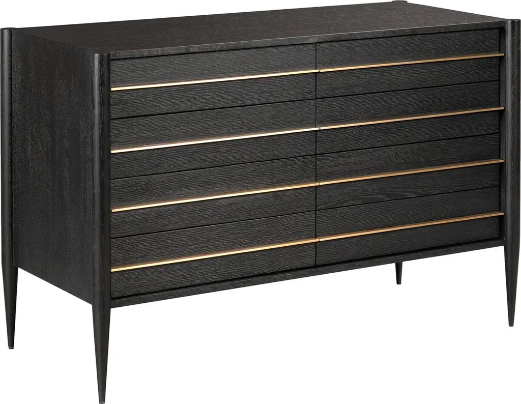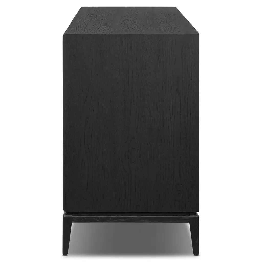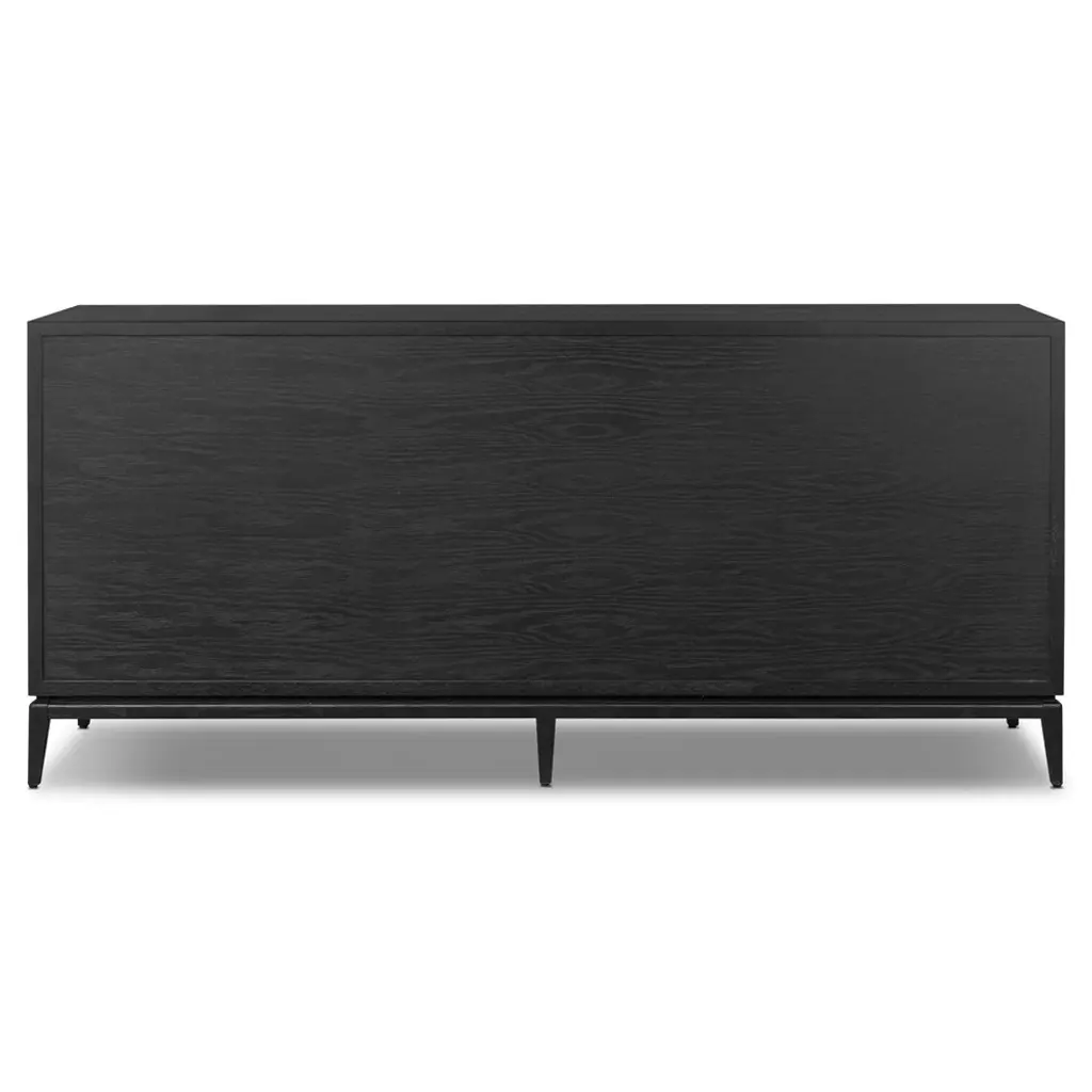 Rosal Modern Classic Black Oak Woven Rush Double Dresser