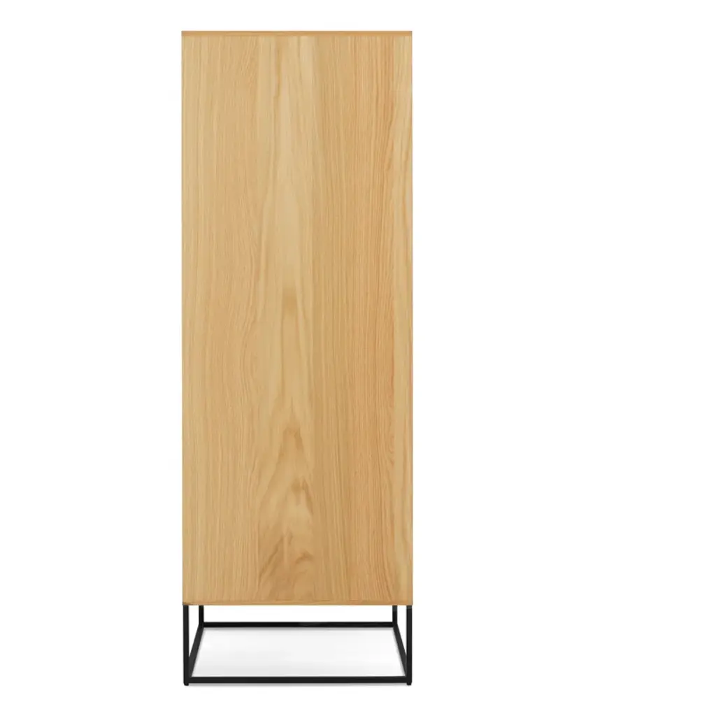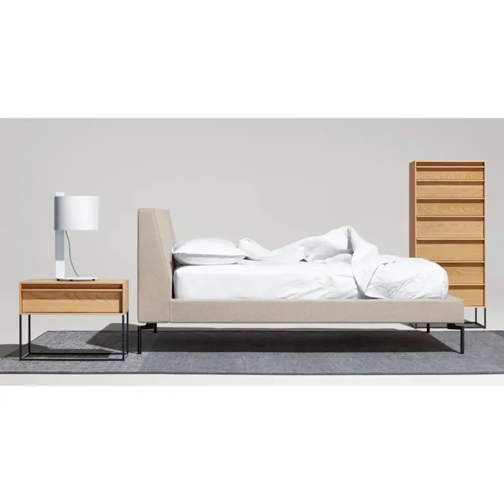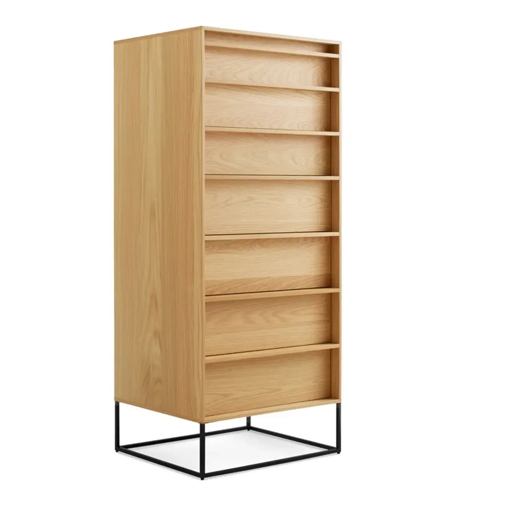 The Rule collection serves up well-considered planes and angles that are ready to slay clutter in any room. Deep-set drawer fronts, detailed by a wood pull, reinforce the linear design and create a seductive shadow line. Dusk-colored drawer and door interiors provide a surprise dose of color while a square steel base ties it all together to form an elegantly, uncomplicated form. All with soft-close drawers and doors.