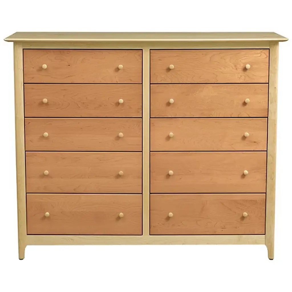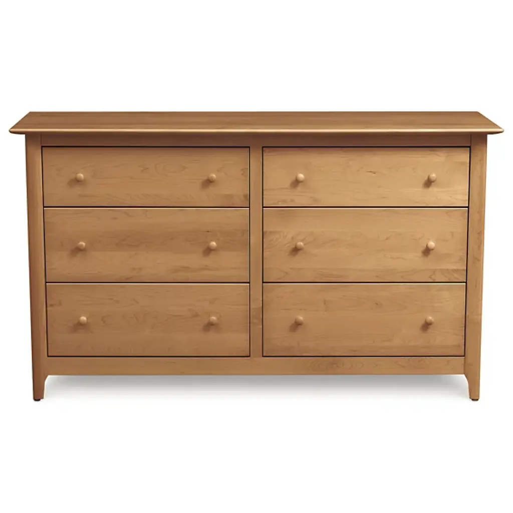 Understated style on a spacious frame. A hefty piece with vintage appeal, the Copeland Furniture Sarah 6 Drawer Dresser presents a quiet presence in its notable dimensions. A Solid Hardwood body creates an interesting combination of subtlety and strength, delivering a natural elegance in a weighted, durable frame. With no design elements beyond the beautiful markings within the Wood, the dresser’s aesthetic stays relatively reserved. Inside the wide frame, the piece tells a busier story. Six deep drawers store and organize any number of items. Adjustable drawer glides keep the compartments on track as they open and close repeatedly. The dresser is constructed using both traditional techniques and modern tools, ensuring you get an excellent structure with hints of vintage, rustic style.