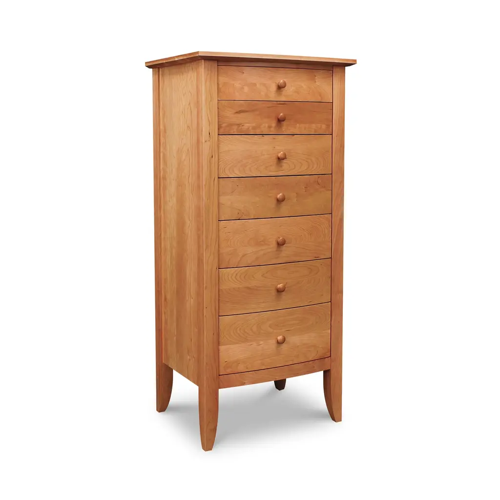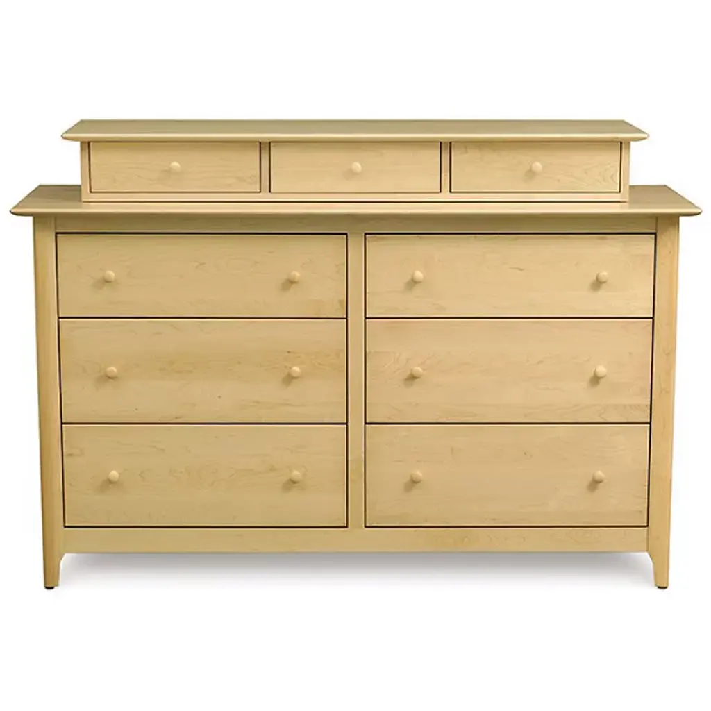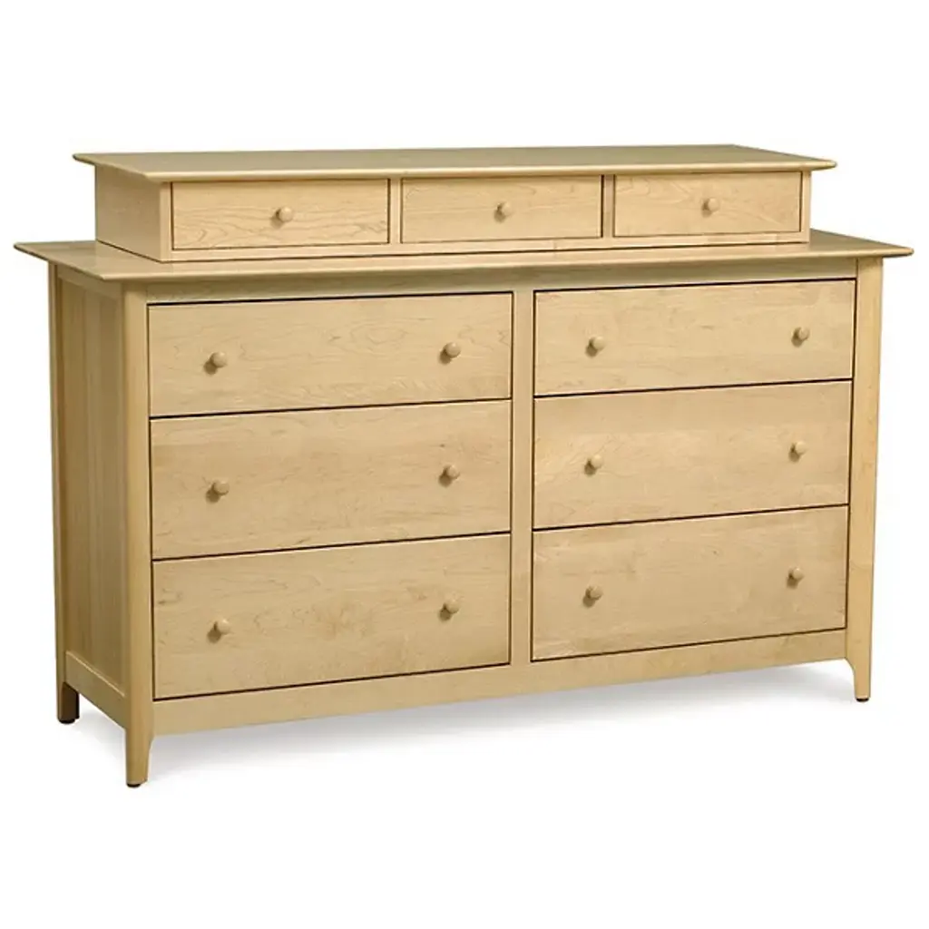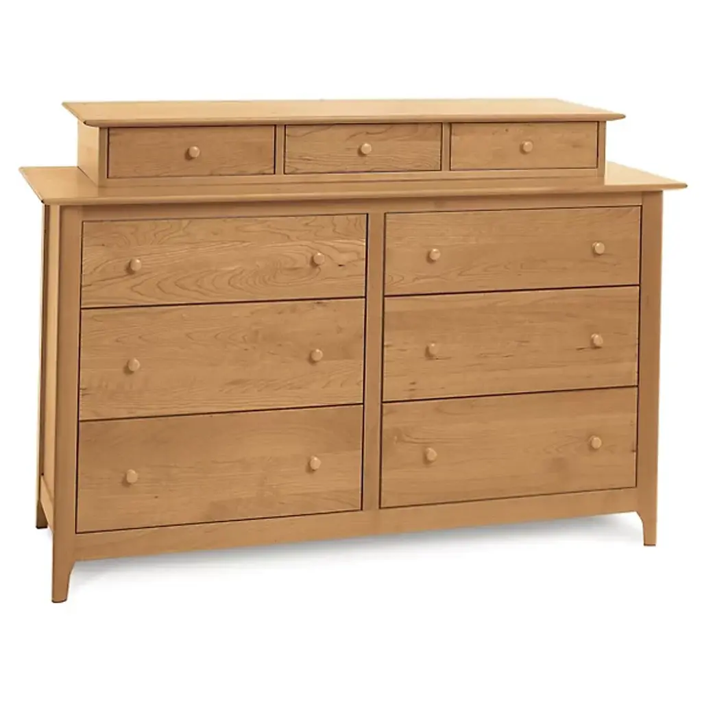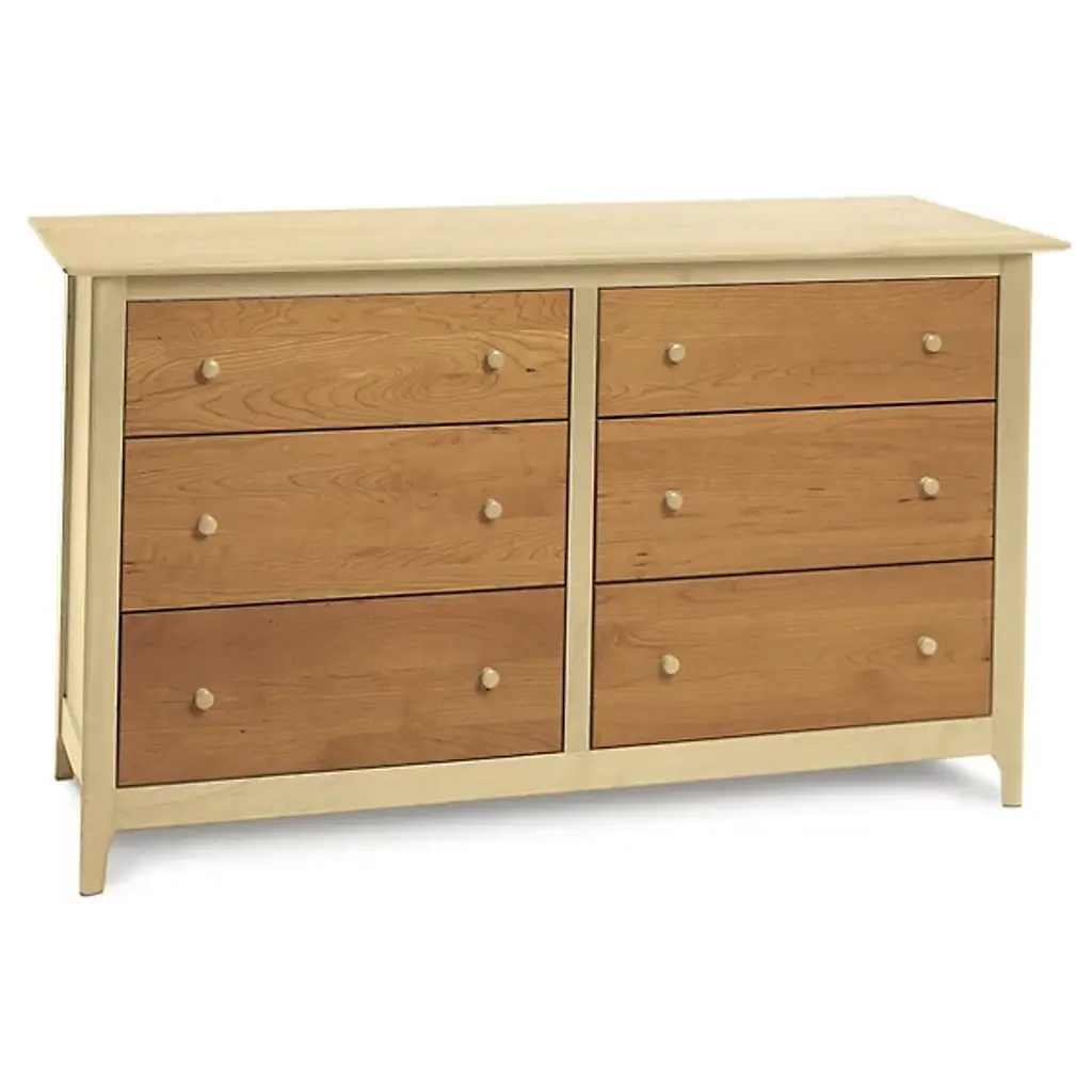 Understated style on a spacious frame. A hefty piece with vintage appeal, the Copeland Furniture Sarah 6 Drawer Dresser presents a quiet presence in its notable dimensions. A Solid Hardwood body creates an interesting combination of subtlety and strength, delivering a natural elegance in a weighted, durable frame. With no design elements beyond the beautiful markings within the Wood, the dresser’s aesthetic stays relatively reserved. Inside the wide frame, the piece tells a busier story. Six deep drawers store and organize any number of items. Adjustable drawer glides keep the compartments on track as they open and close repeatedly. The dresser is constructed using both traditional techniques and modern tools, ensuring you get an excellent structure with hints of vintage, rustic style.