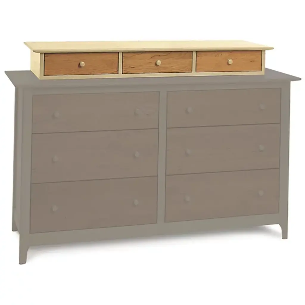 An accessory for your accessories. The undersized Copeland Furniture Sarah Accessory Case for Dresser works as an accent over your existing unit while delivering excellent utility. Made from the same beautiful Solid Hardwood as the rest of the Sarah collection, the small case packs lots of natural appeal into its reserved frame. While much smaller than the pieces it accompanies, this addition receives the same attention to detail and offers the same lasting look and function. Making smart use of an open dresser surface, the case provides drawers for your smaller items that get easily lost without the right storage space. Enhancing the stylish arrangement you’ve already established, this piece goes a long way in making everything a little more organized.