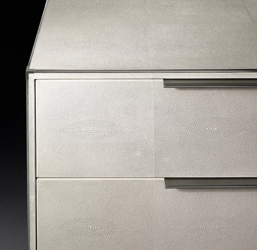 A 1970s interpretation of French Art Deco design, our bedroom collection from the Van Thiels celebrates the marriage of two eras. With elegant materials and a refined form, it's clad in rich shagreen-embossed leather with metal trim detail. SHOP THE ENTIRE COLLECTION