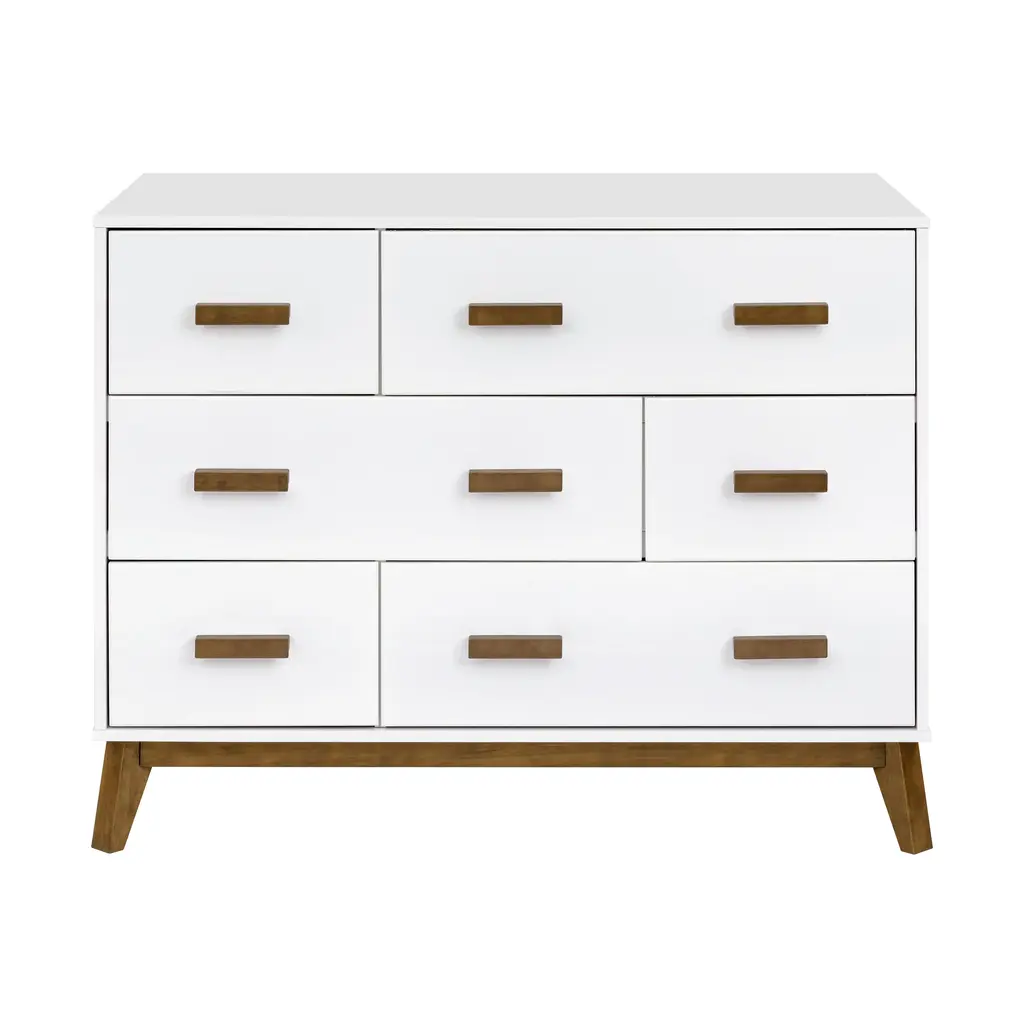 Introducing the Scoot 6-Drawer Dresser from Babyletto, a stunning addition to your nursery with its sleek, mid-century modern design. Featuring tapered feet and customizable two-toned or solid color options to perfectly complement your Scoot 3-in-1 Crib. With six smooth-glide drawers, this dresser offers both style and practical storage for all your nursery essentials. Highlights
