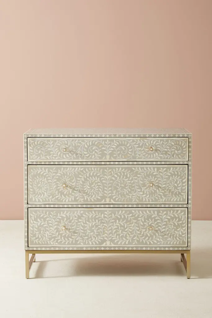 Scroll Vine Inlay Three-drawer Dresser