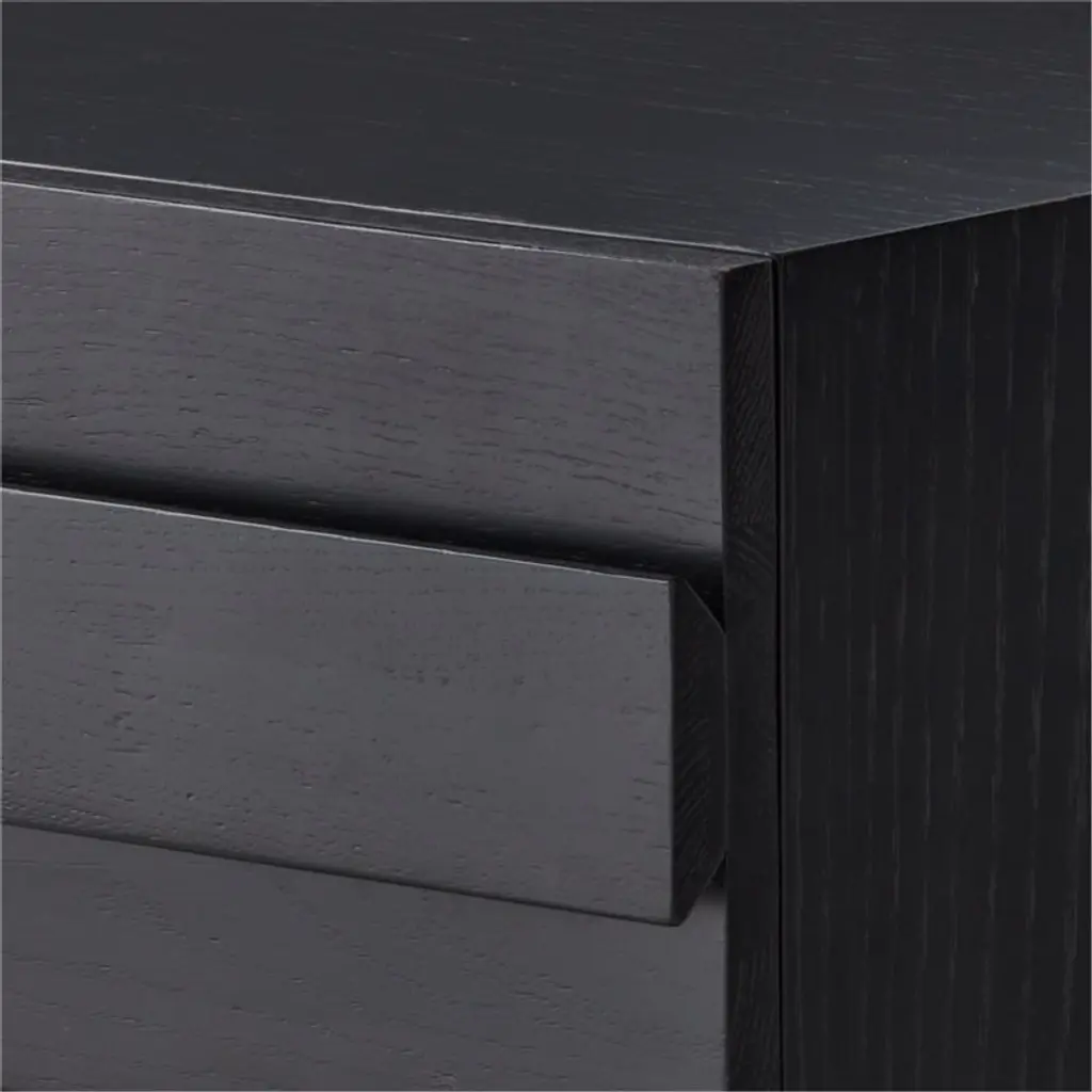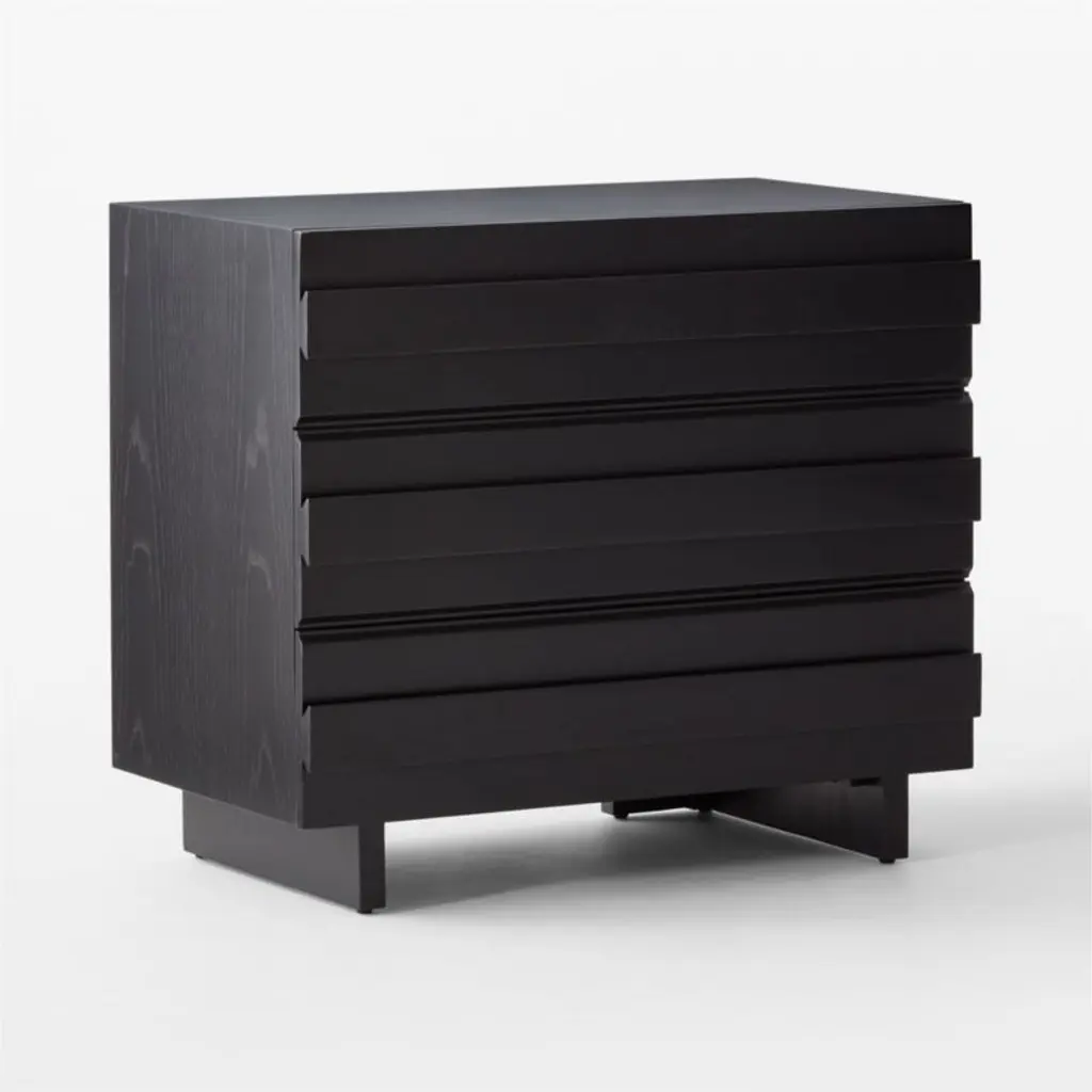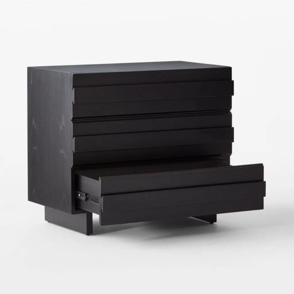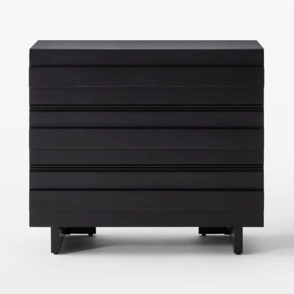 Spacious oak chest by Lawson-Fenning accentuates the beauty of natural wood. Horizontal ribbons of white oak, certified sustainable by the Forest Stewardship Council ® and given an ebonized black finish, add dimension through naturally occurring whorls inherent to wood. Solid wood drawers have dovetail joint construction and soft-close glides; their wooden handles are incorporated into the drawer fronts for a streamlined look. CB2 exclusive.