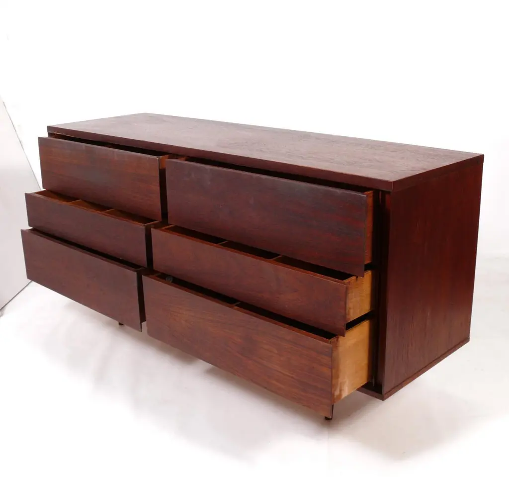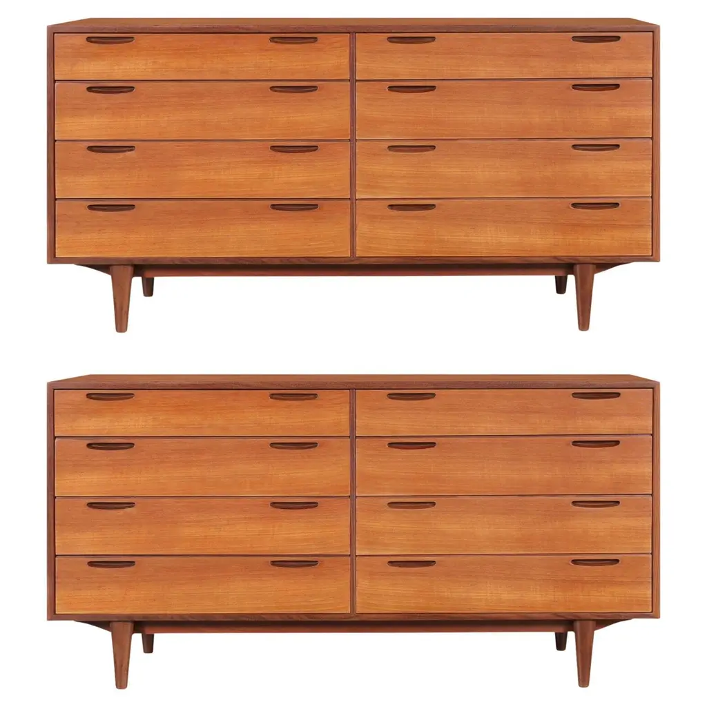 Selection of Danish Modern Walnut Chests or Dressers, Denmark, circa 1960s. Imported by John Stuart of NYC. John Stuart imported Danish designs by Finn Juhl. Arne Vodder, Hans Wegner, etc, but we are unsure of the designer of these chests. They are priced at $3800 each or $7000 for the pair. They are currently being refinished and can be completed in your choice of finish color, including the original walnut color. They offer a voluminous amount of storage with six wide, deep drawers in each chest.