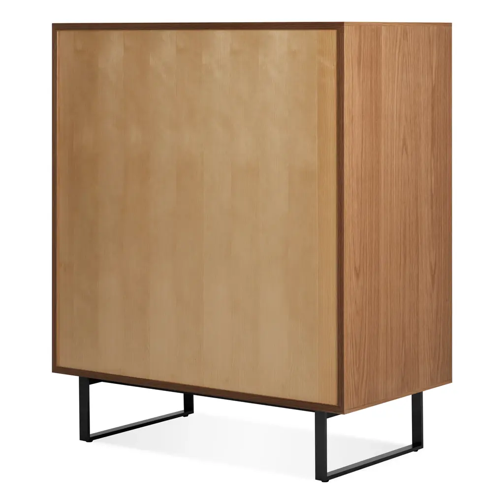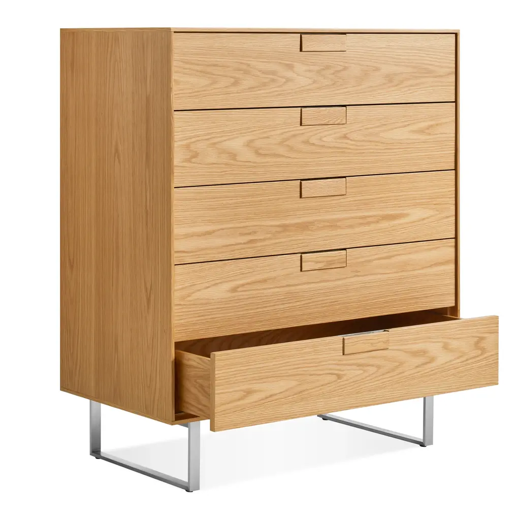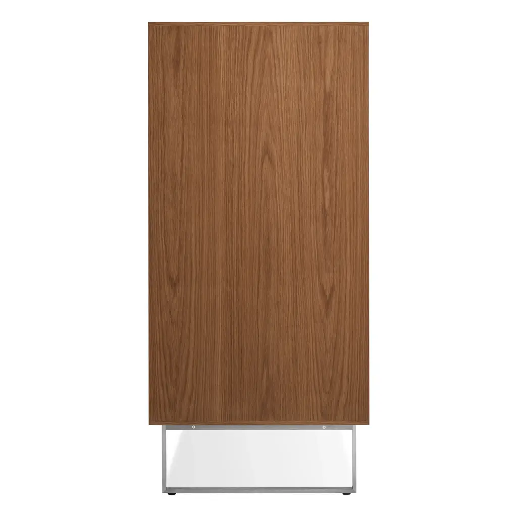 An elegant and refined approach with thin edges and thoughtful proportions. Subtle and inventive door pulls smoothly open and close drawers with contrasting FLW red interior. Series Eleven. When ten just isn't quite enough. Features