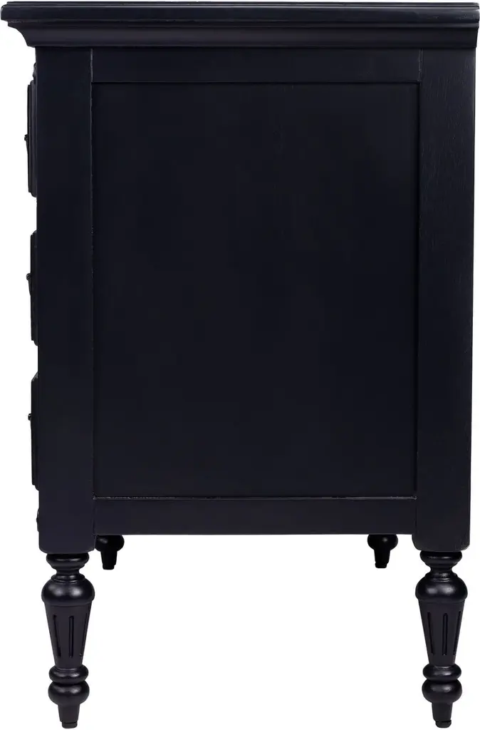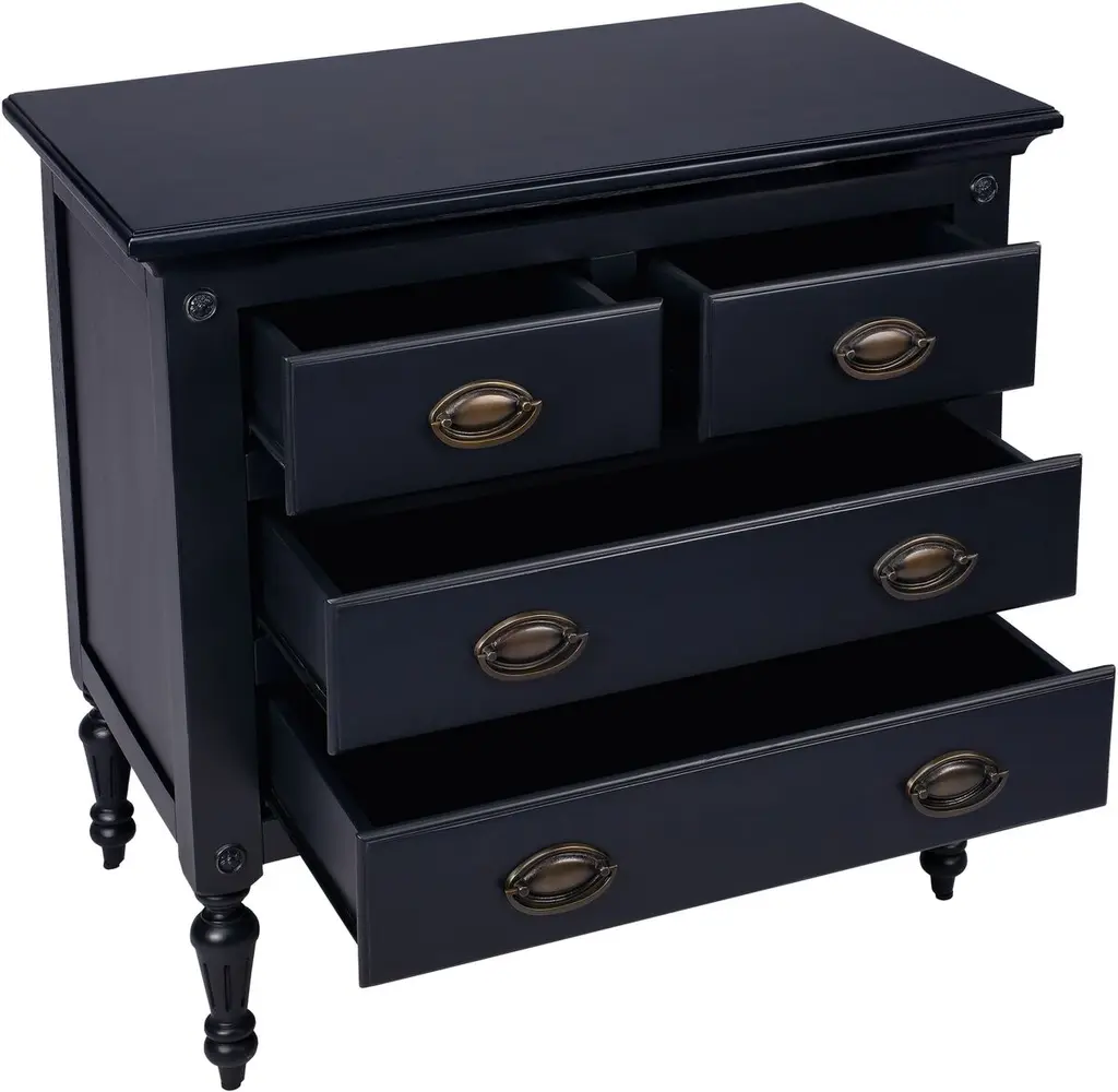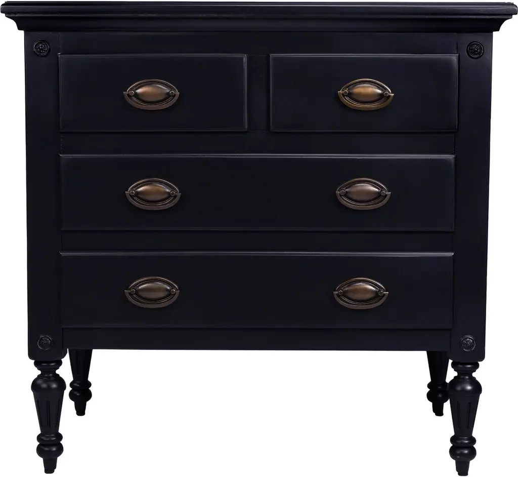 Crafted with exquisite attention to detail, this stunning 4-drawer chest is a timeless piece that exudes traditional antique charm. Its elegant design, featuring turned legs and rosette accents, brings a touch of romance to any space, whether it's an entryway, master suite, or any corner yearning for a splash of style. Let this enchanting chest transform your home into a haven of beauty and grace.