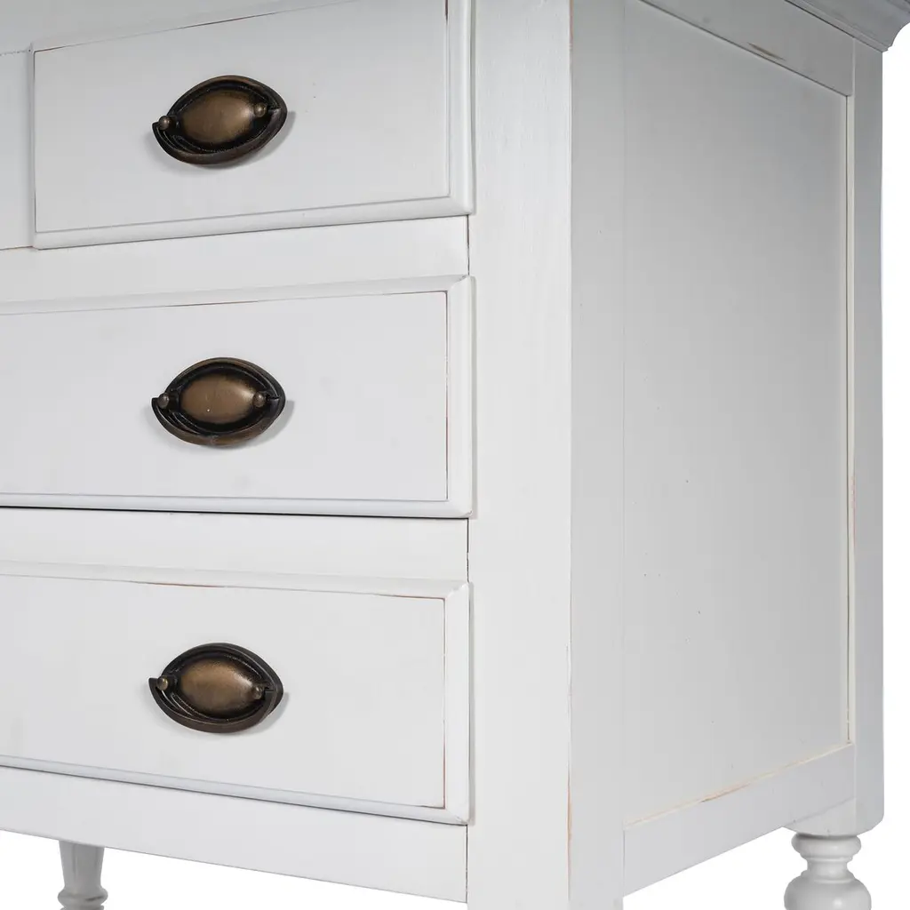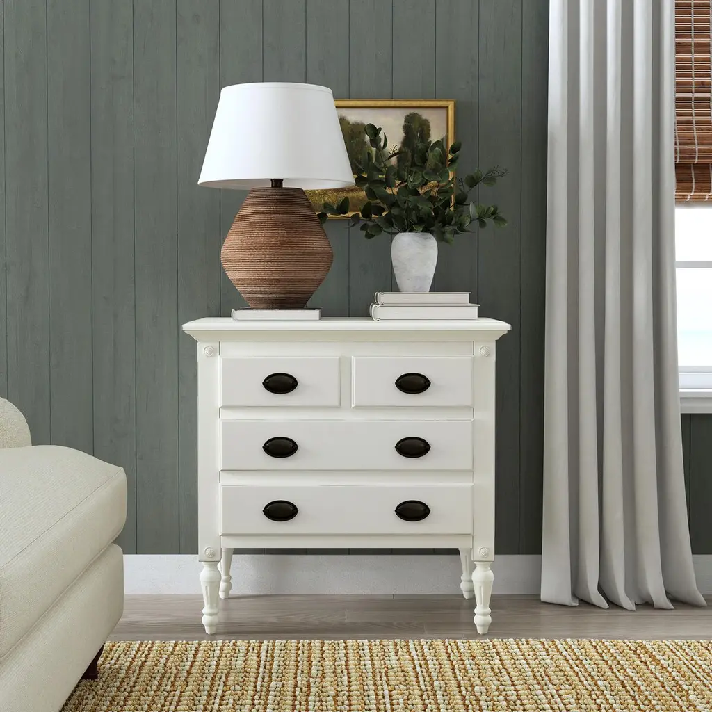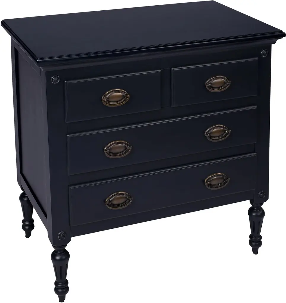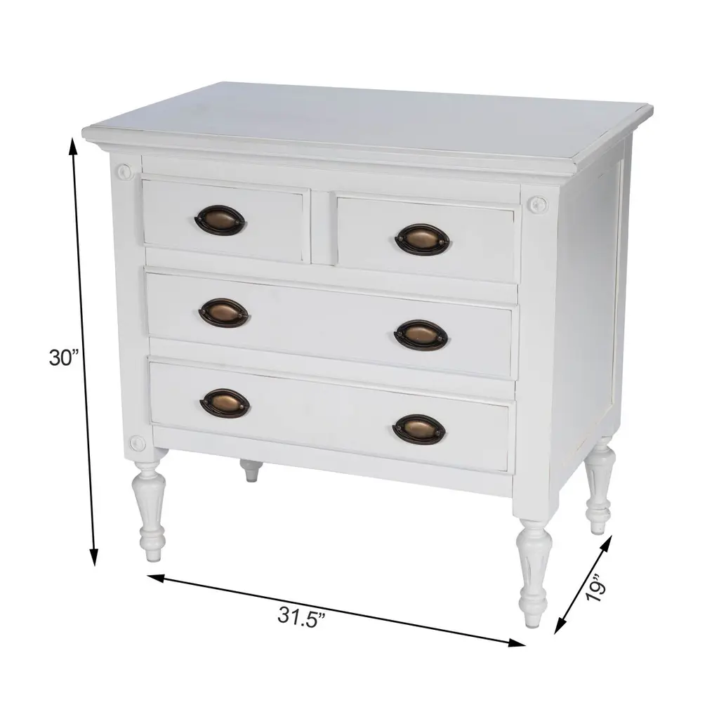 Crafted with exquisite attention to detail, this stunning 4-drawer chest is a timeless piece that exudes traditional antique charm. Its elegant design, featuring turned legs and rosette accents, brings a touch of romance to any space, whether it's an entryway, master suite, or any corner yearning for a splash of style. Let this enchanting chest transform your home into a haven of beauty and grace.