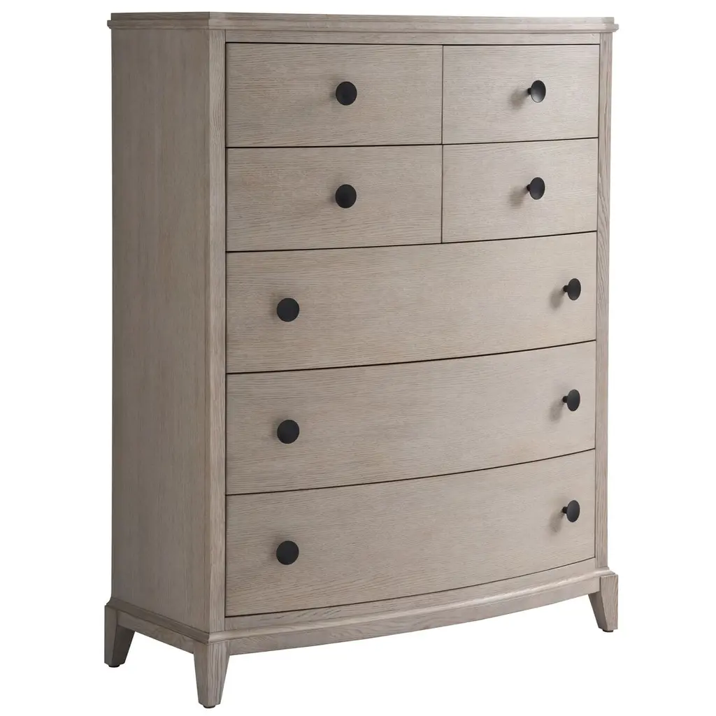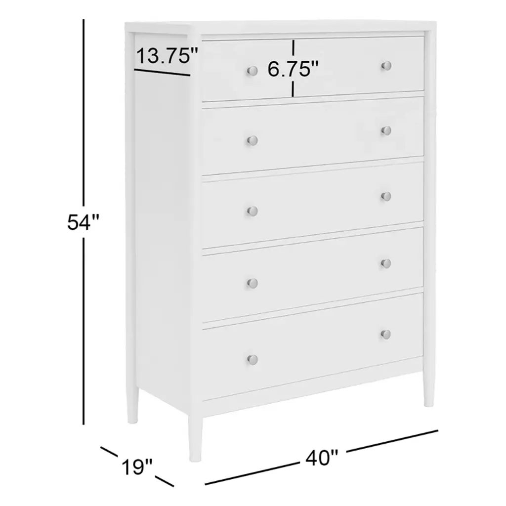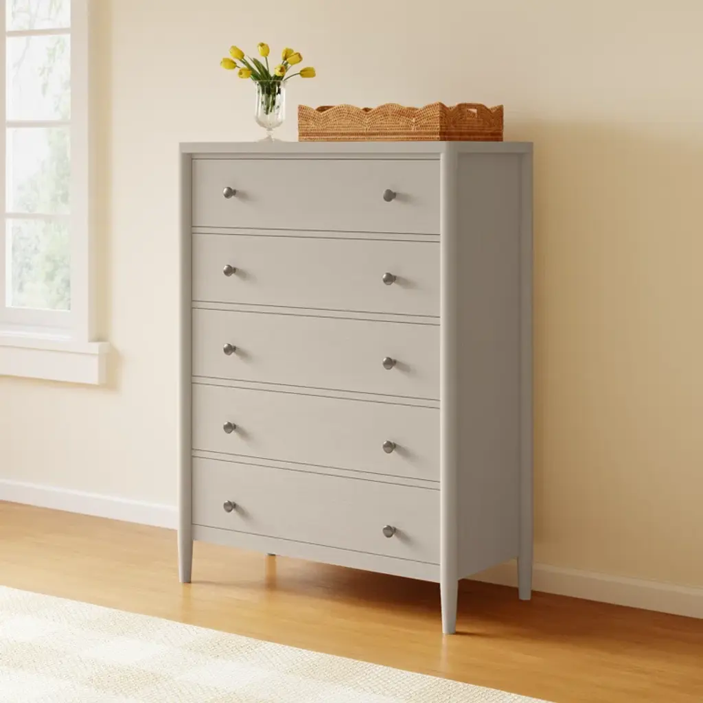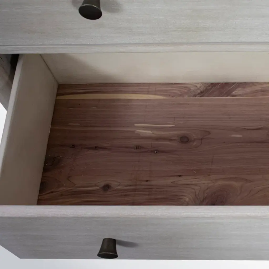 Casual and versatile in design, our 5-drawer dresser offers a lot of storage in a compact footprint. The wooden frame has an off-white painted finish, and the drawers are adorned with aged-bronze hardware for distinctive contrast. We love that the top drawer box is lined with felt – making it the perfect spot for your delicates. Bonus: A wall anchor is included and recommended for extra stability.