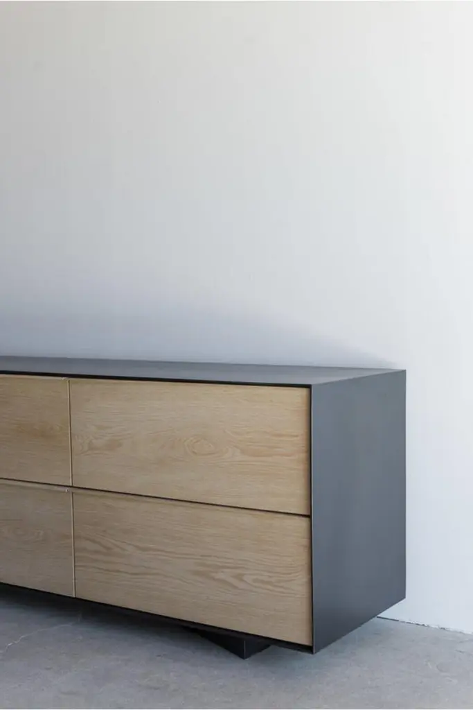 The Kings Credenza is handmade locally in Los Angeles, California. A simple combination of natural material and modern design, the long, lean body of the Kings Credenza fits nearly any aesthetic. The modern, matte black casing of the credenza’s exterior highlights the beautiful walnut boards of the doors, creating a new classic for the California Modern lifestyle. The casing is routed at 45°, while the doors are detailed with mirroring finger pull handles. Soft close hinges and matte black steel legs give the credenza a distinct and distinguished finish.Like all pieces, the Credenza’s combination of modern design and natural materials result in a piece that acclimates to the design features of any room, whether it’s a Venice Beach bungalow or Bay Area office. The interior is divided into two sections, each fitted with an adjustable shelf to allow for flexible and functional storage.INDUSTRIAL STEEL + HARDBOARD + WALNUT, POLY + HARDWAX OIL FINISH CUSTOMIZE THIS PIECEFor all furniture, protection from heat and moisture is crucial to the longevity of the piece. To help prevent scratches, use adhesive felt pads, coasters, placemats, and avoid sliding objects across the surface of the piece when possible.Lacquer + Paint + Metal Surfaces - Dry dust with a clean microfiber or feather duster. Wipe with a slightly damp microfiber towel and mild cleaner as needed. Wipe dry promptly. We recommend that you clean with ammonia-free Windex or a mild surface cleaner. Please stay away from bleach, alcohol, or petroleum based cleaners. You may use a general purpose wood cleaner.Avoid using furniture polish as over time it can accumulate and leave a residue.Wax + Oil Finish - Dry dust with a clean microfiber or feather duster. Wipe with a slightly damp microfiber towel. Wipe dry immediately. Clean with ammonia-free Windex or a mild surface cleaner. Stay away from bleach, alcohol, or petroleum based cleaners. Our natural wax and oil finishes will dull over time. Wax or teak oil may be reapplied as needed using a soft white cloth. Raw Wood Dry dust with a clean microfiber or feather duster. Use a damp microfiber towel or soft brush as needed. Do not use any product containing wax or oil to clean.Outdoor Furniture - Outdoor furniture may require frequent oiling. A cover is strongly recommended for all outdoor furniture. Avoid prolonged exposure to moisture and/or direct sunlight. If exposed to rain, allow cushions to air dry completely before putting them back on the frame. Leather Care - Dry dust with a clean microfiber or feather duster. Wipe with a slightly damp microfiber towel. Do not use cleaning products on the leather. The recommended leather conditioner is Skidmore’s Original Leather Cream. Marble + Stone - Dry dust with a clean microfiber or feather duster. Wipe with a slightly damp microfiber towel. Wipe dry immediately. For daily cleaning we recommend using Orange Glo and/or Method Stone Cleaner on the marble. All marble and stone surfaces are protected with a sealer. To maintain the overall appearance and protection of the marble or stone, reseal with Miracle 511 Seal & Enhance. It is important to use coasters and clean up moisture immediately on marble and stone surfaces.Additional information:Dimension: 6-DOOR 108”L + 20”W + 28”H 420LBS4-DOOR 80”L + 20”W + 28”H 240LBS3-DOOR 60”L + 20”W + 28”H 200LB