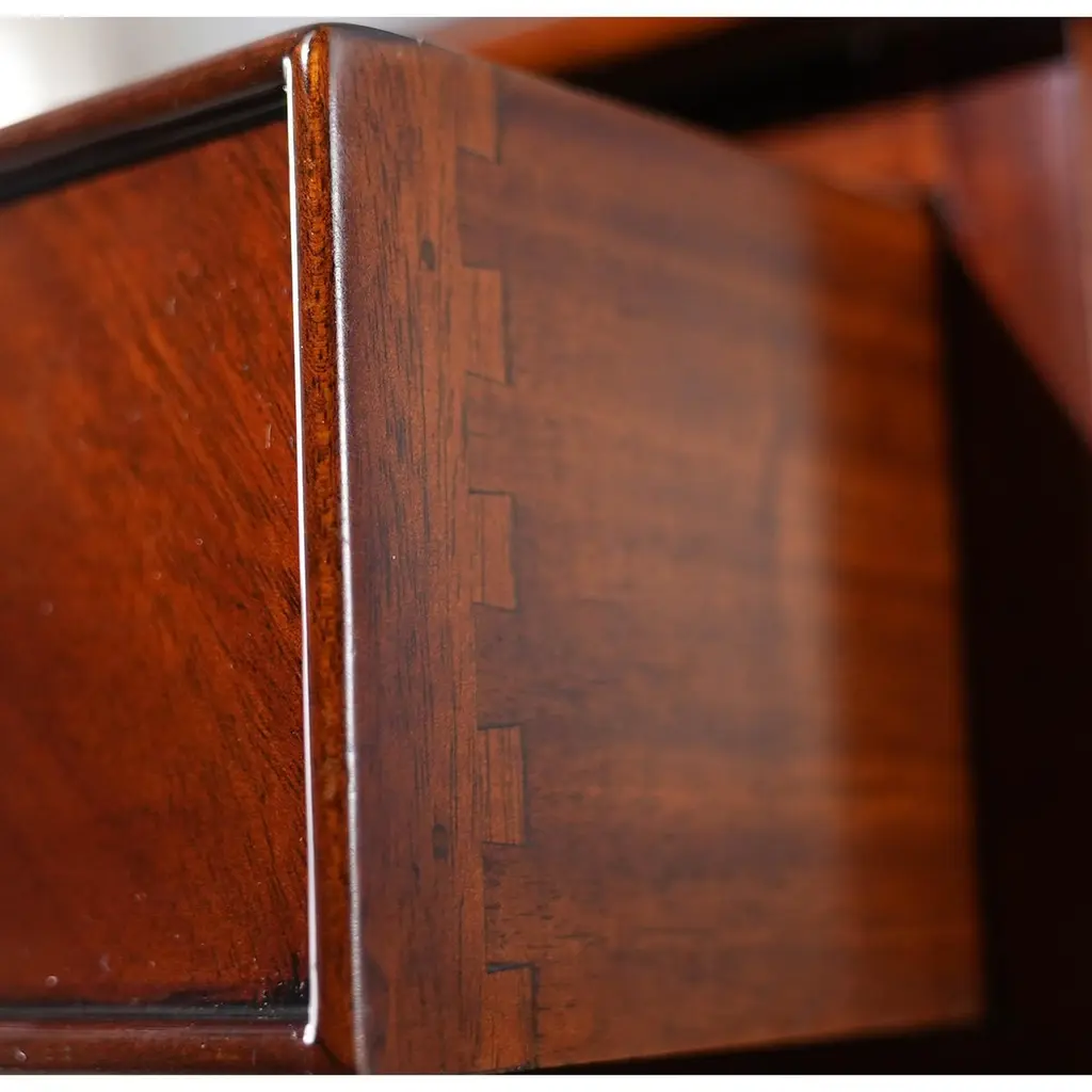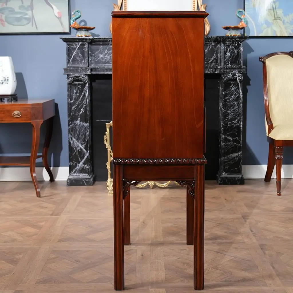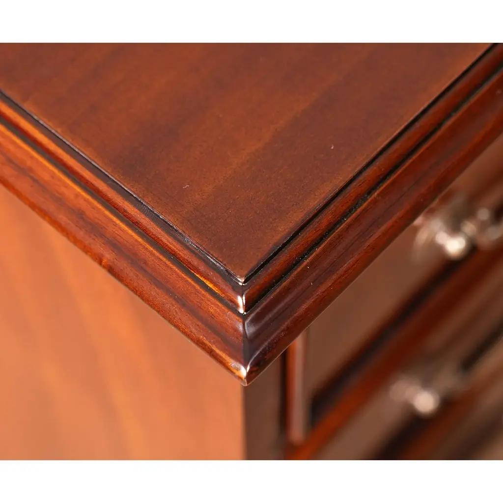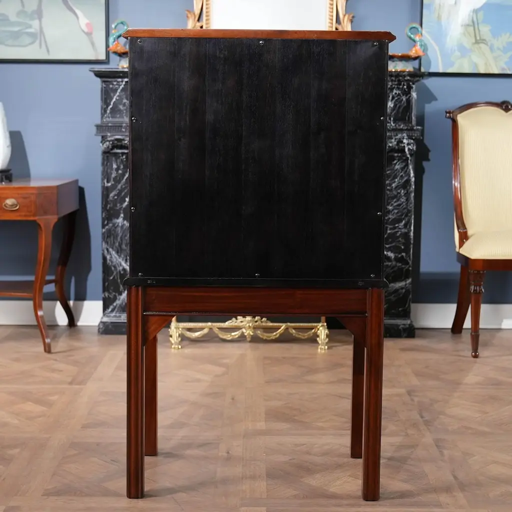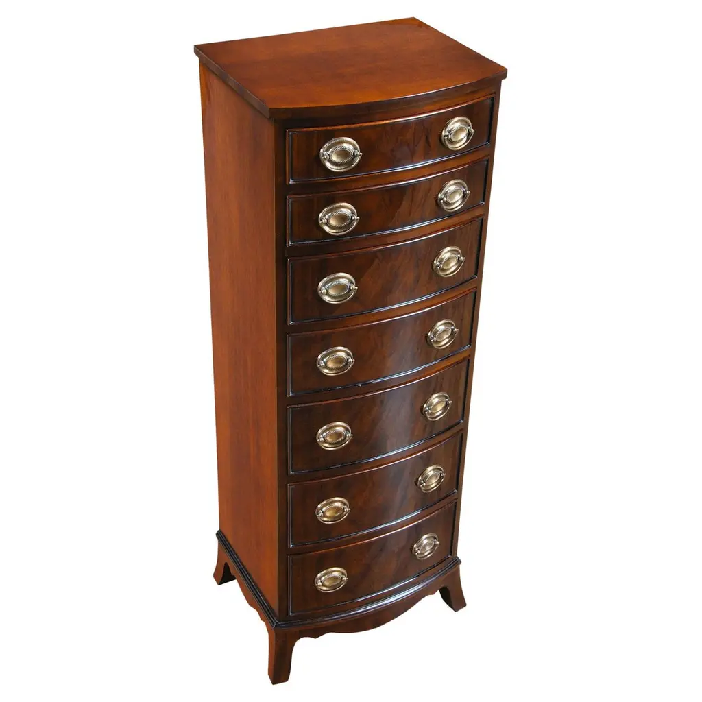 Ideal for smaller spaces the Niagara Furniture Silver Chest offers a lot of storage while using up a small amount of floor space. The four graduated drawers provide a lot of storage space while the tall legs keep the piece looking light and elevated. Produced from the finest quality solid mahogany and mahogany veneers the silver chest features dovetailed drawers designed to last a lifetime. Also useful in many other settings.The top 3 drawers inside measurements are: 22 3/4?w X 12?d X 3?hThe bottom drawer inside measurements are: 22 3/4?w X 12?d X 7?hMeasures 26.5?w x 16?d x 47.5?h metric: 69 x 41 x 122.