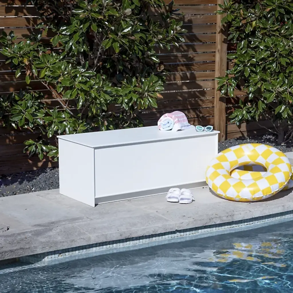 Simplify outdoor storage with the Slider Outdoor Storage Chest from Loll Design, offering a convenient solution for stashing lounge cushions, blankets, or garden tools. This versatile chest doubles as a coffee table, providing functionality and style in one sleek design. Crafted from post-consumer recycled materials, including milk jugs, it promotes sustainability and features vibrant colors that enhance contemporary aesthetics. With space for up to eight Lollygagger cushions or various garden essentials, this chest is perfect for any outdoor space requiring added storage, its durability ensuring it can withstand all four seasons with ease.