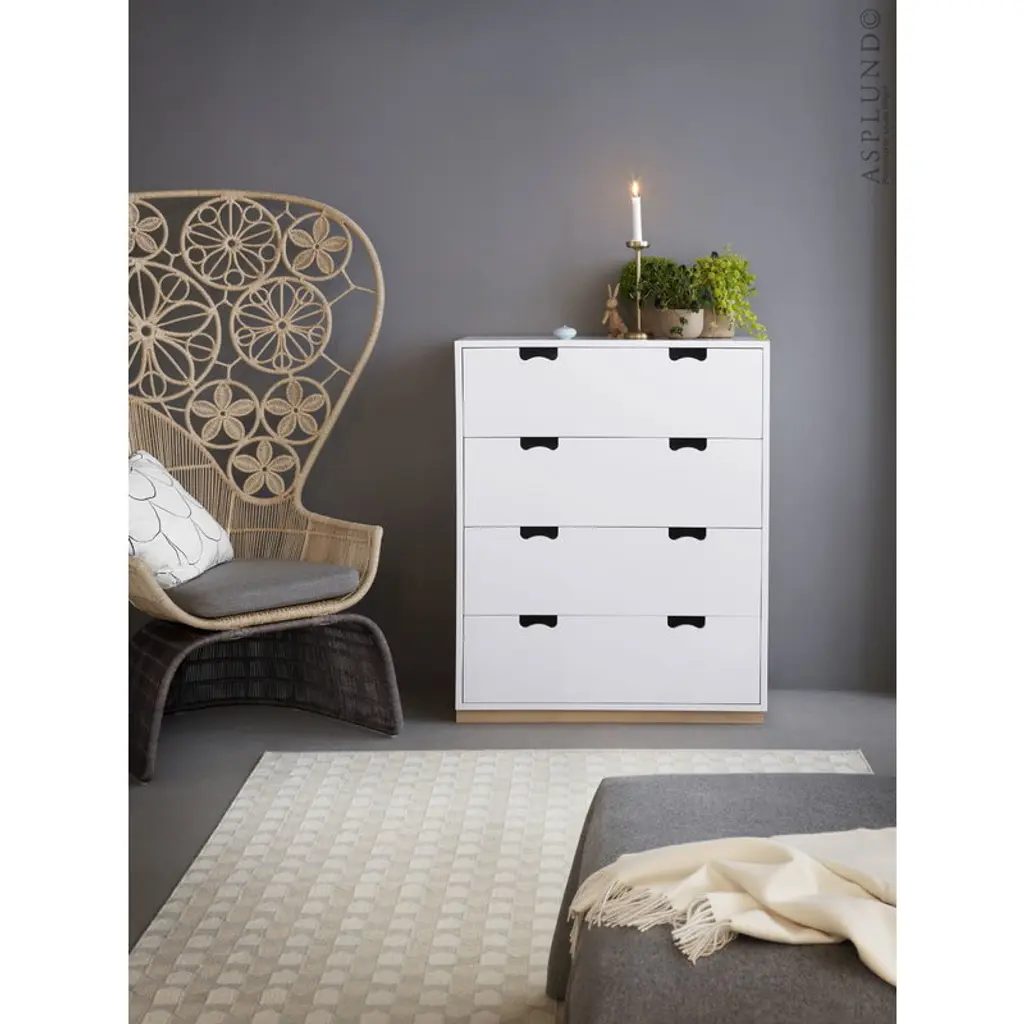 The Snow A chest of drawers has four spacious drawers that you can use to store for example clothes. Snow A and other storage options in the series are designed by Swedish Jonas Bohlin and Thomas Sandell. The Snow series has become a classic known first and foremost for its high quality and versatility. The design of the series is simplistic yet distinctive, and it contains several options of storage for all kinds of spaces ranging from offices to nurseries.