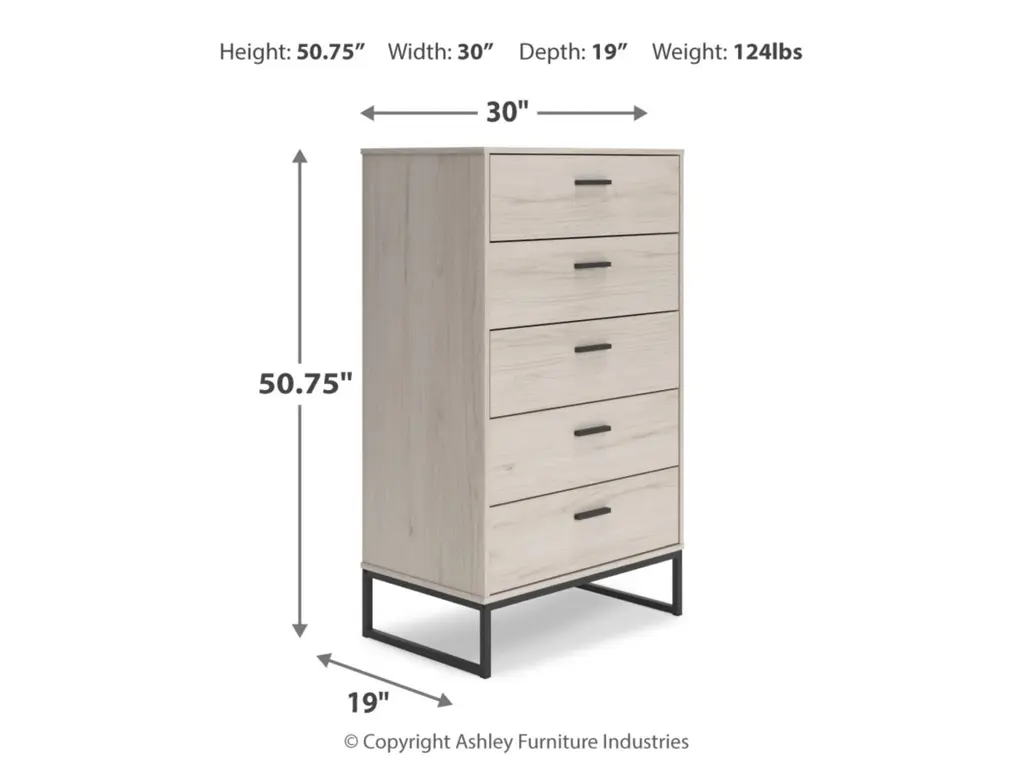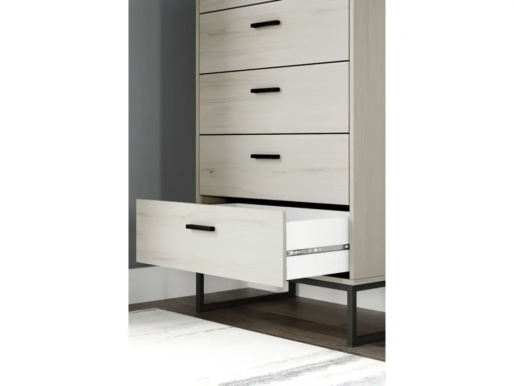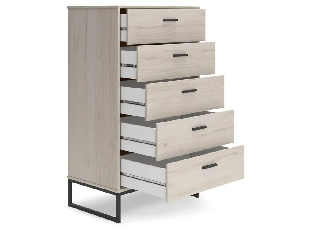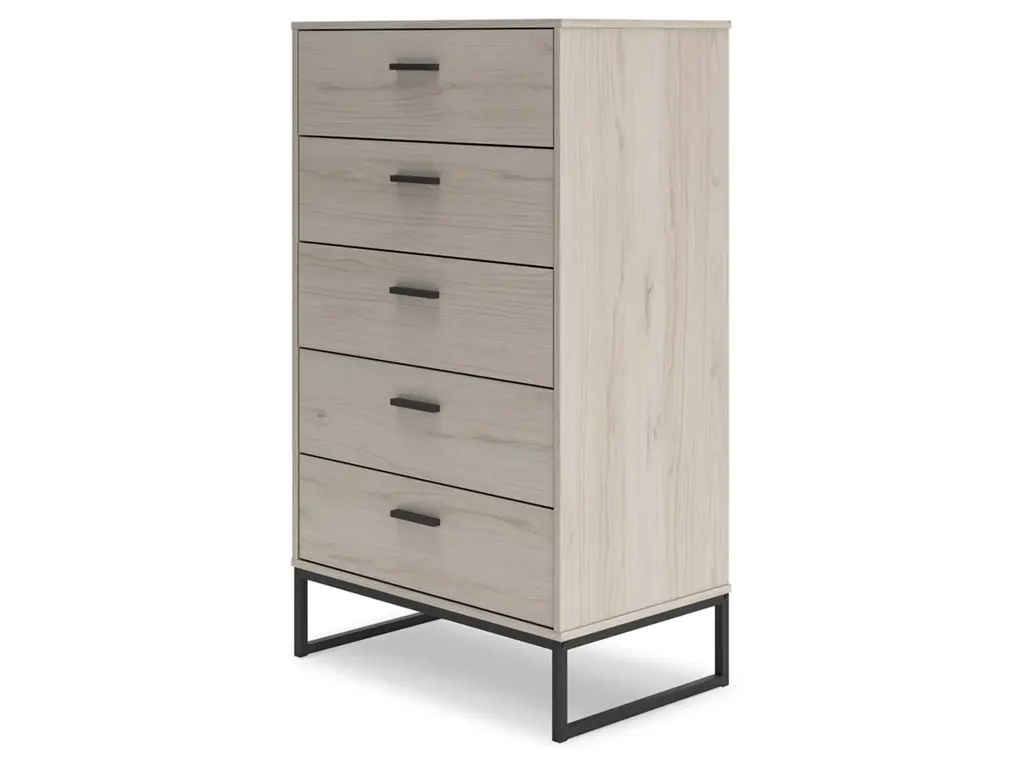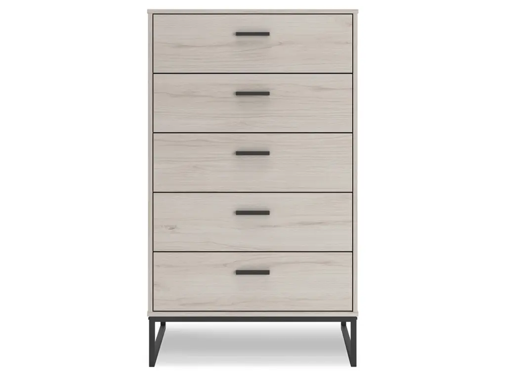 Light and bright, the Socalle chest of drawers is inspired by chic design. A light natural finish over replicated oak grain offers an authentic touch to this so-cool piece. It beautifully blends the hues of natural living with the edginess of your modern lifestyle.