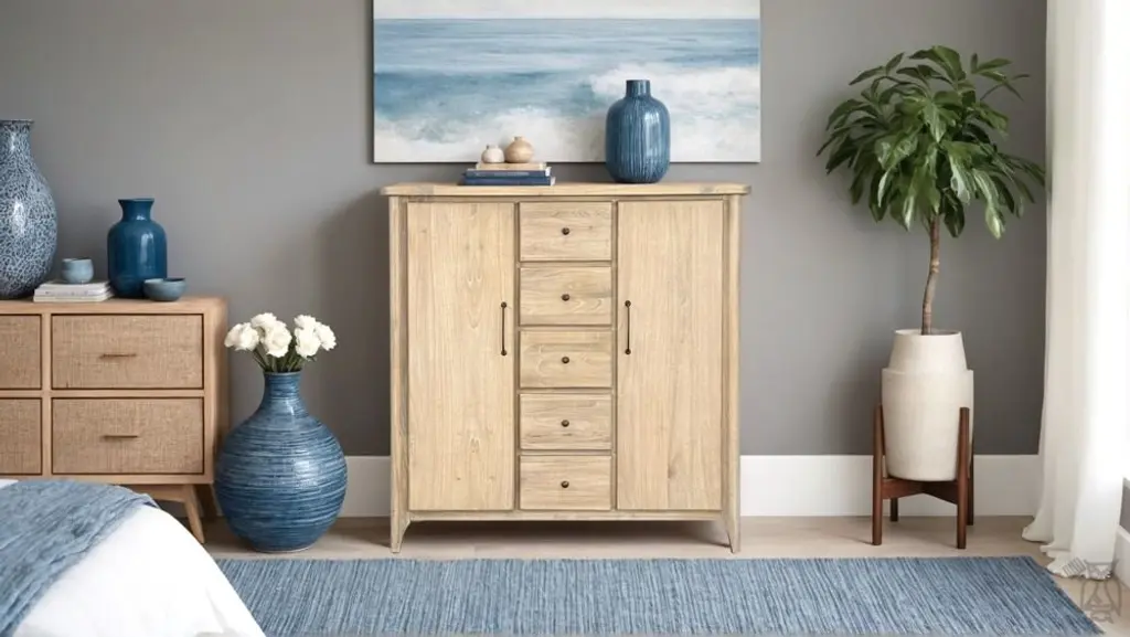 Solid Mindi Wood Aria Chest Of Drawers With Door In Washed Finish