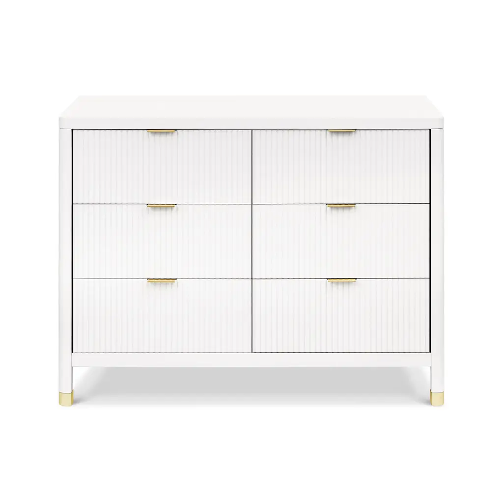 Sonia Shagreen 6-Drawer Double Dresser Pearl Shagreen, Lucite, Brushed Brass