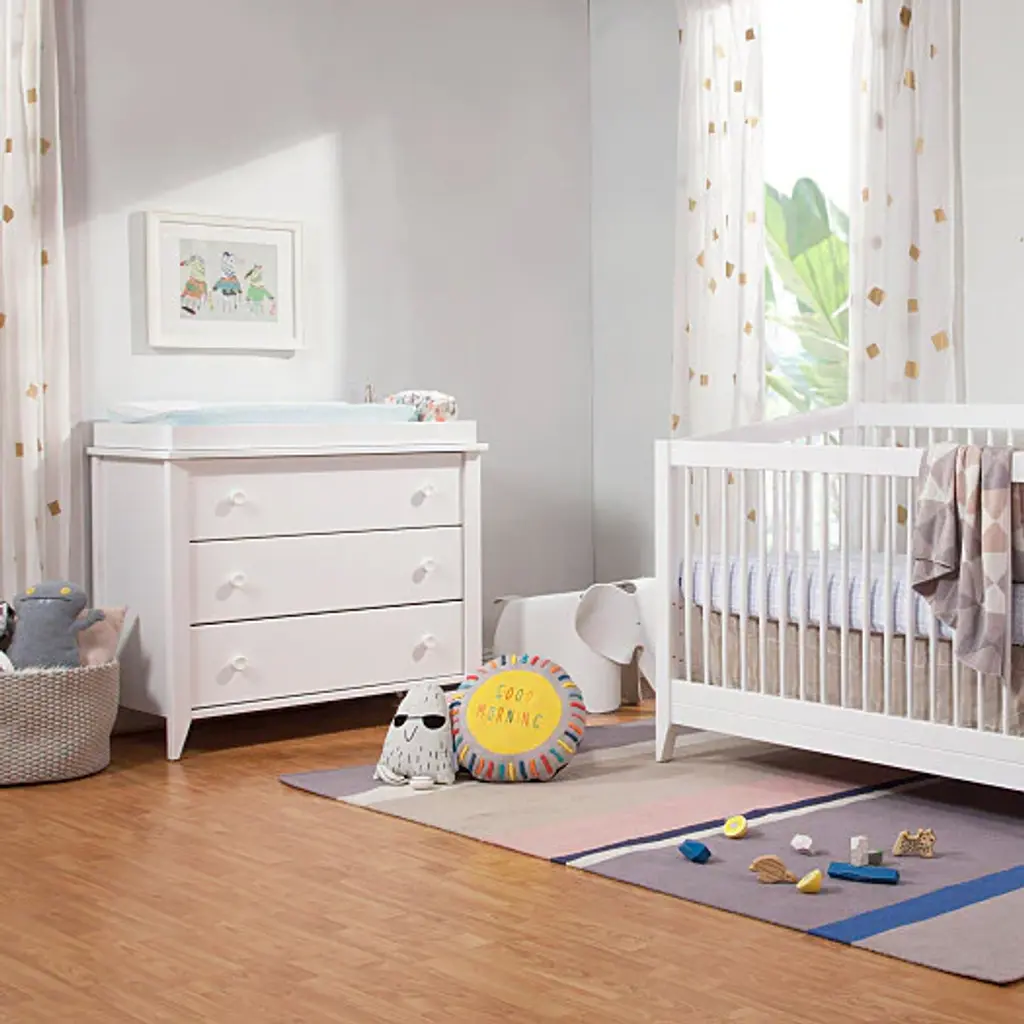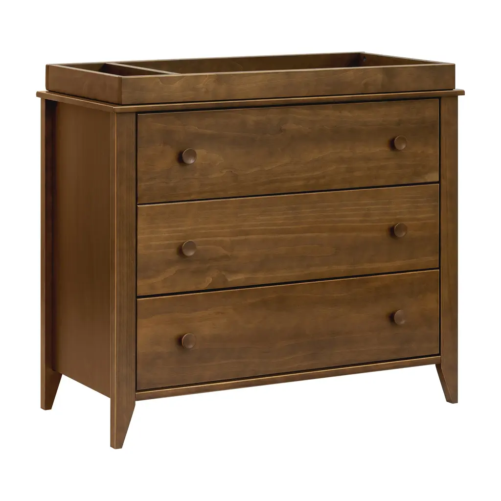 Mid-century modern, meet craftsman charm in the Sprout 3-drawer Changer Dresser from Babyletto. Crafted from sustainably-sourced pine wood, this changer dresser is eco-friendly and outfitted with a removable changer top keep diaper-changing supplies within reach. Three spacious, smooth-glide drawers ensure ample space to store your little one's wardrobe.Highlights