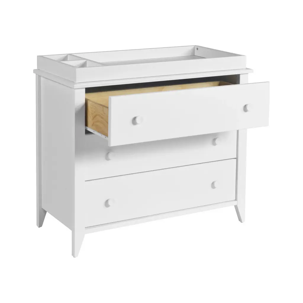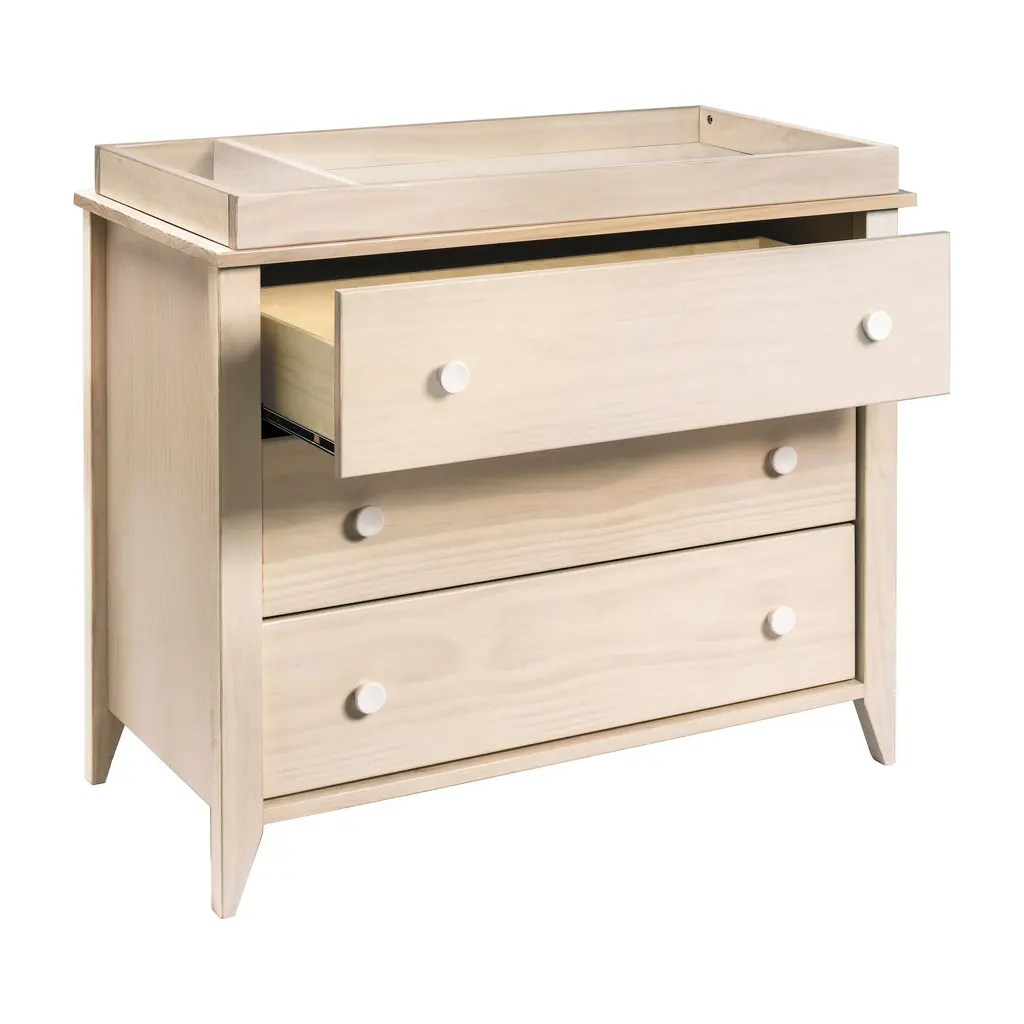Mid-century modern, meet craftsman charm in the Sprout 3-drawer Changer Dresser from Babyletto. Crafted from sustainably-sourced pine wood, this changer dresser is eco-friendly and outfitted with a removable changer top keep diaper-changing supplies within reach. Three spacious, smooth-glide drawers ensure ample space to store your little one's wardrobe.Highlights