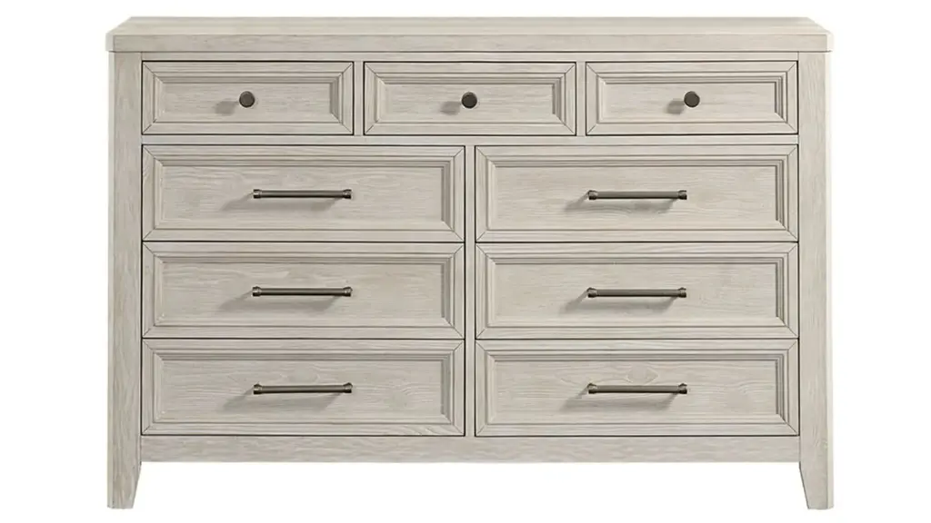 A modern edge to a classic design, our St. Martin Bedroom Collection celebrates heirloom quality in a traditional style. This simple-yet-striking dresser is equipped with spacious drawers accented by complementing hardware.