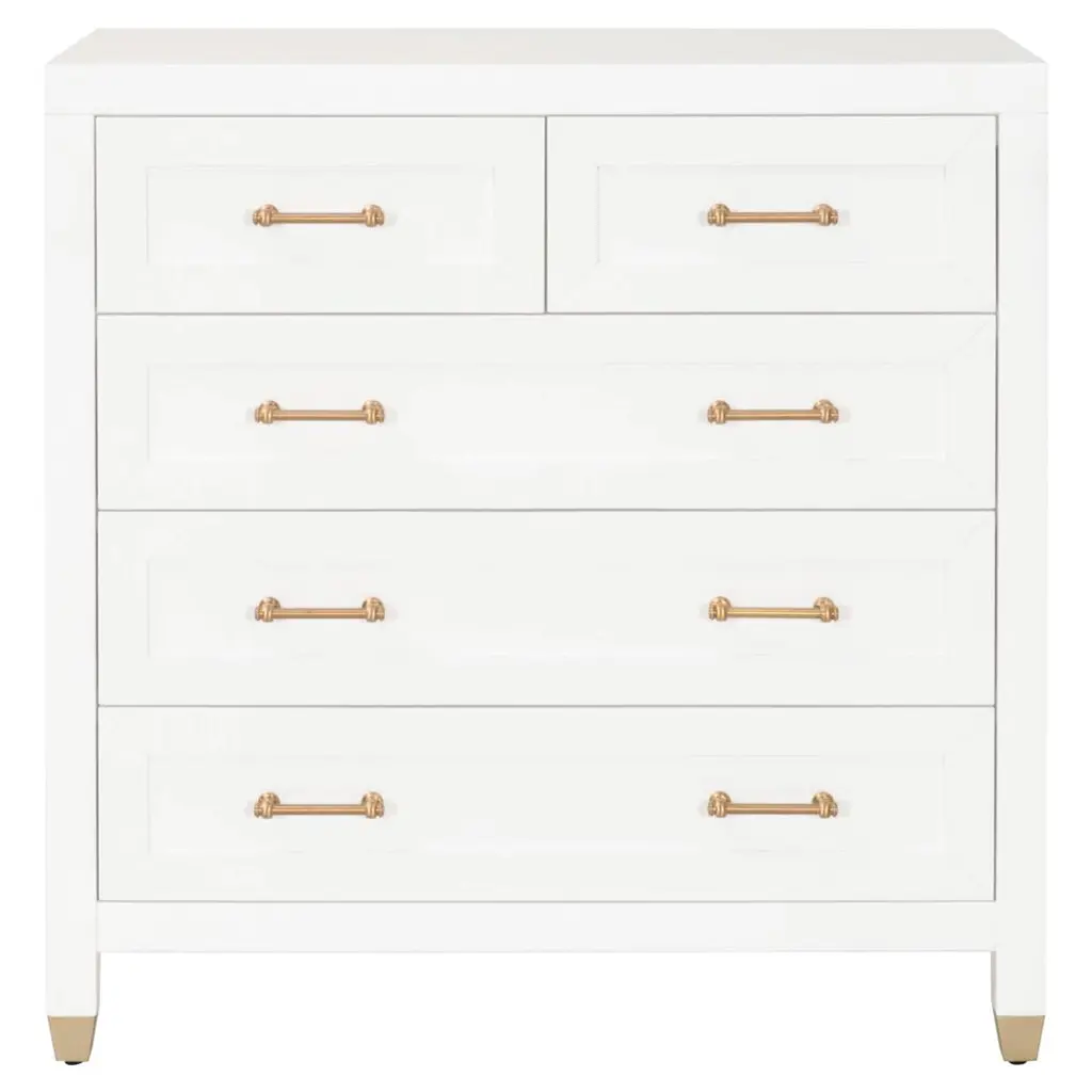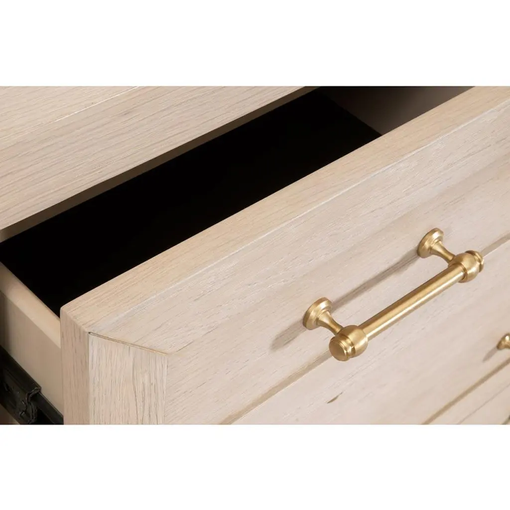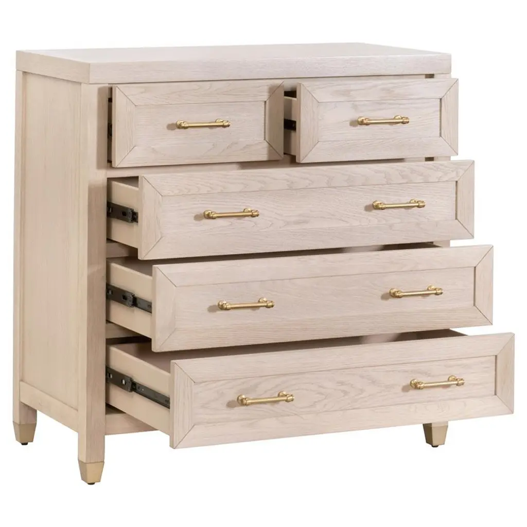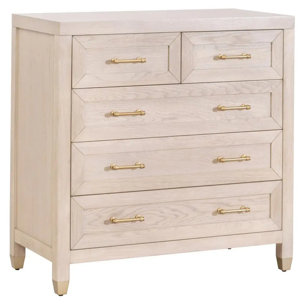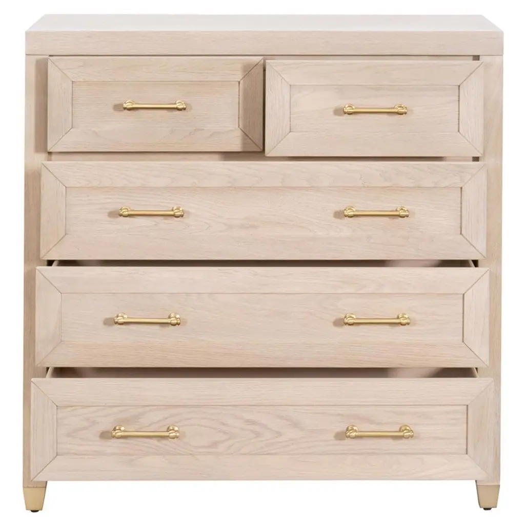 Stacy Modern Classic Light Brown Oak Brass Steel 5 Drawer Dresser