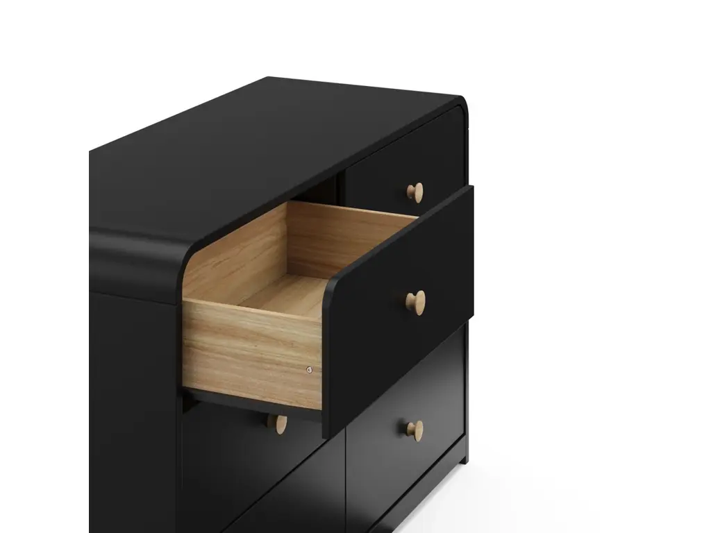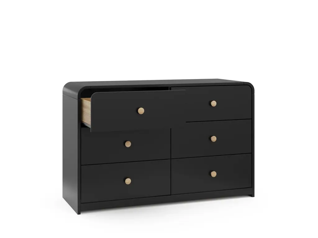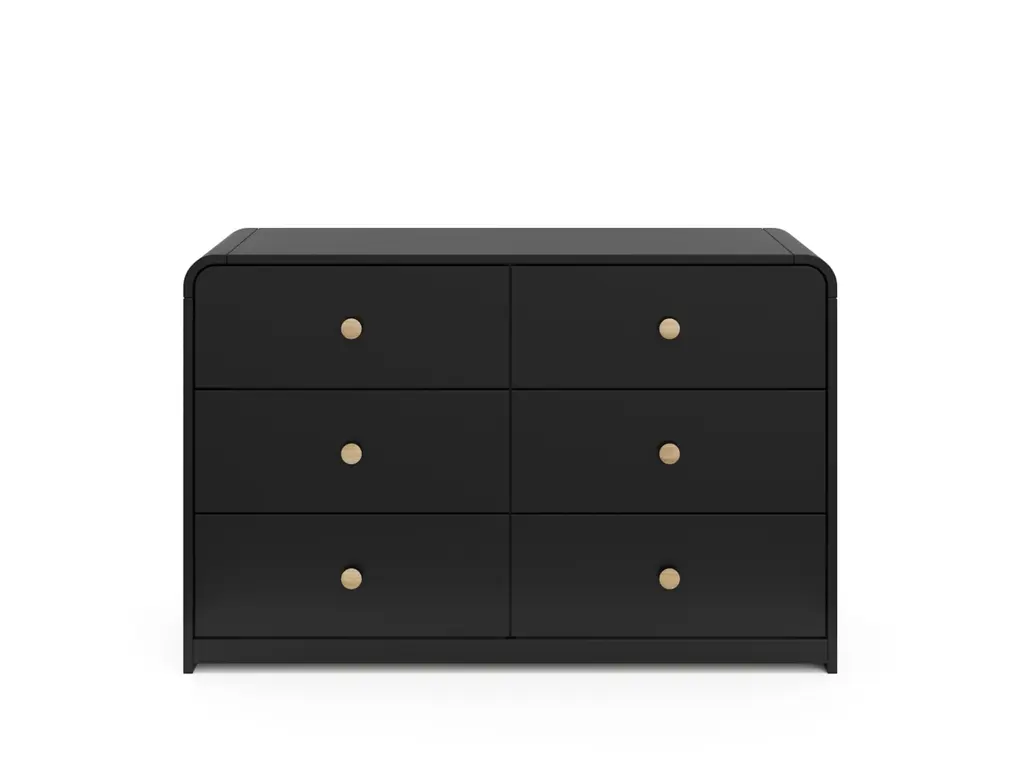 Introducing the Storkcraft Next Santos 6 Drawer Dresser, by Storkcraft. Organize your kids bedroom in style with the 6 Drawer Dresser. With its clean lines, rounded silhouette, and two-tone aesthetic, the Santos is sure to add a pop of style and storage convenience to any kids bedroom. For even more bedroom storage, pair your Santos 6 Drawer Dresser with the Santos 2-Drawer Nightstand. This 6 Drawer Dresser was crafted to seamlessly complement the entire Storkcraft Next Santos Collection or any kids bedroom furniture of your choice. Plus, it prioritizes safety with its innovative interlocking drawer system and tip-over restraint kit, minimizing furniture tip-over hazards.
