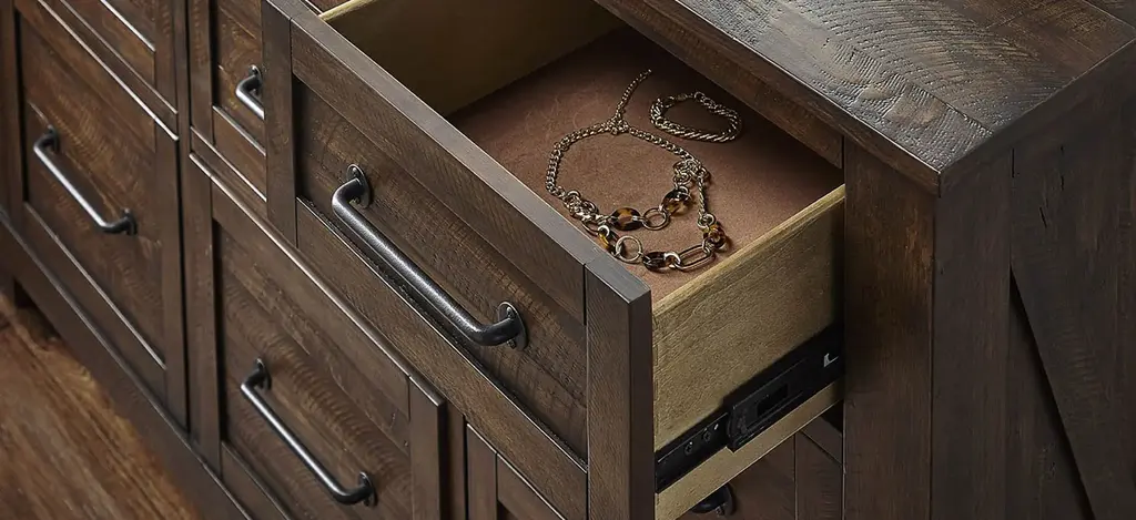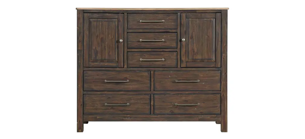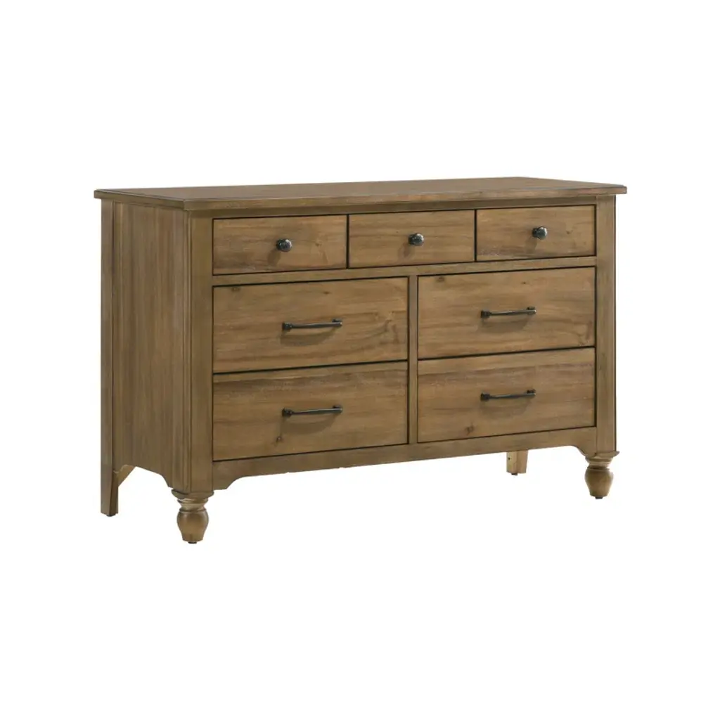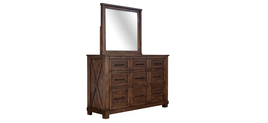 Our Sun Valley bedroom dresser evokes the rustic style of early America. Accented with industrial handles while a distinctive rustic timber finish highlights the natural character of solid pine. Each sturdy dresser provides ample storage and plenty of features.