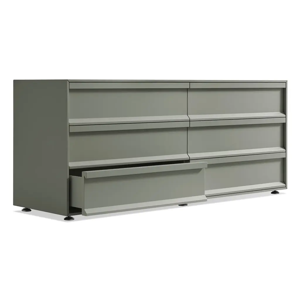 Uncomplicated storage for messy times. Beveled relief drawer pulls are set off by a matte painted finish. Soft close drawers keep the action smooth and serene.