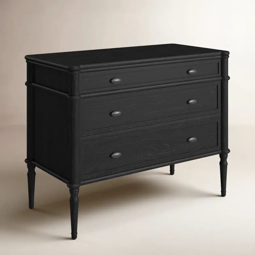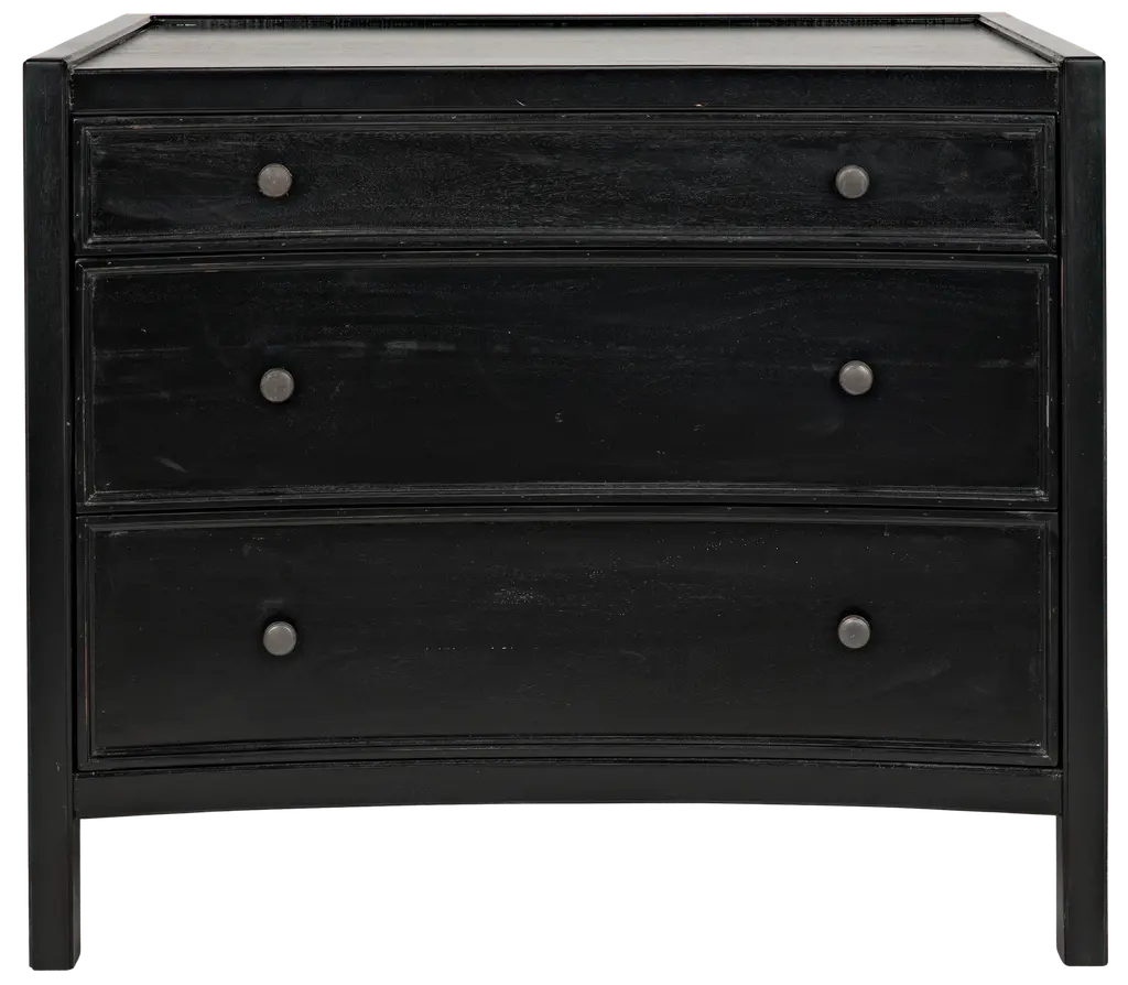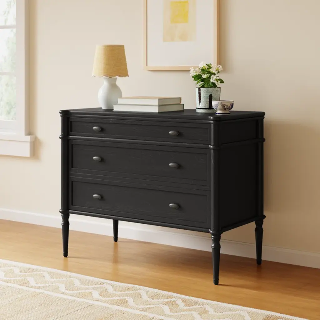 Discover the perfect blend of rustic allure and modern functionality with this three-drawer dresser. Crafted from a mix of solid wood and engineered wood, it showcases a horizontal orientation and a finished back for versatile placement in your bedroom. The wood slide center drawers provide ample storage space, while the intriguing contrasts and inviting textures elevate your space. This dresser is a delightful addition to any home, offering a touch of character and timeless style.