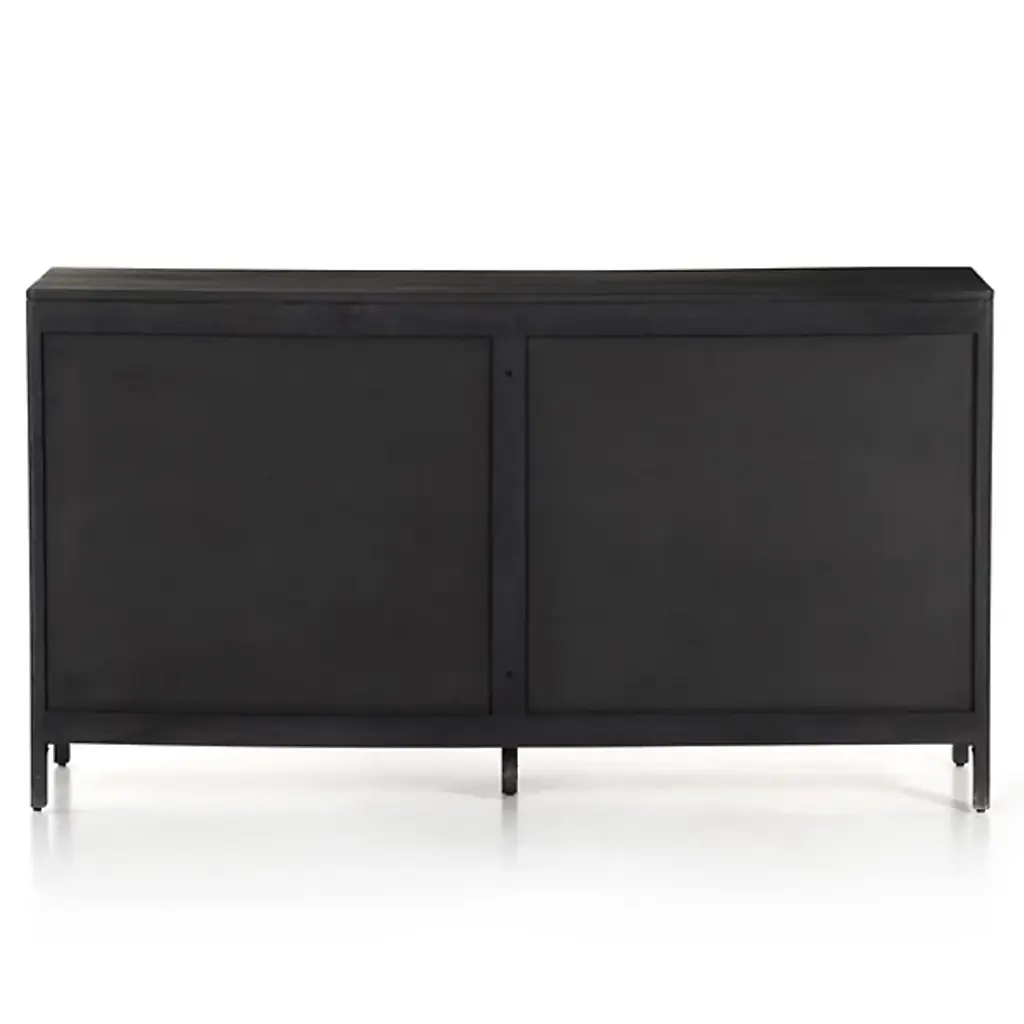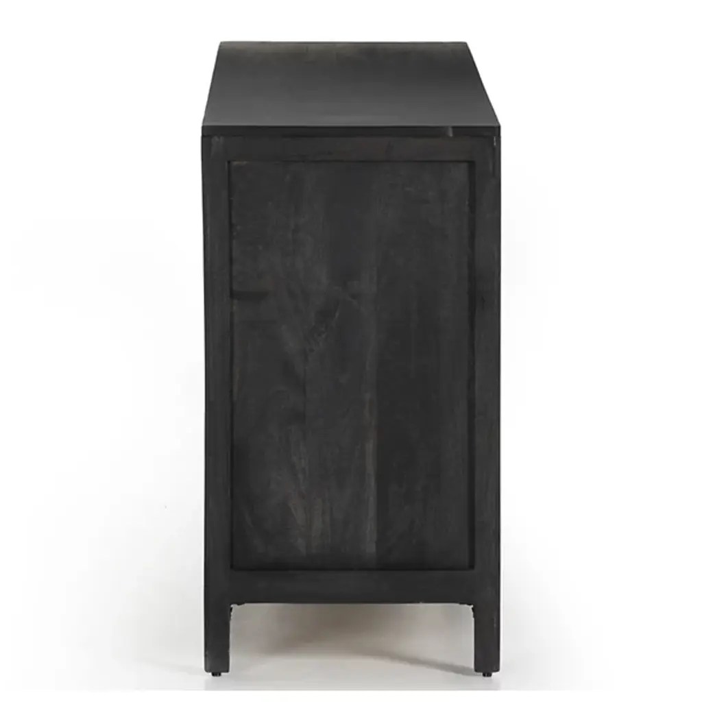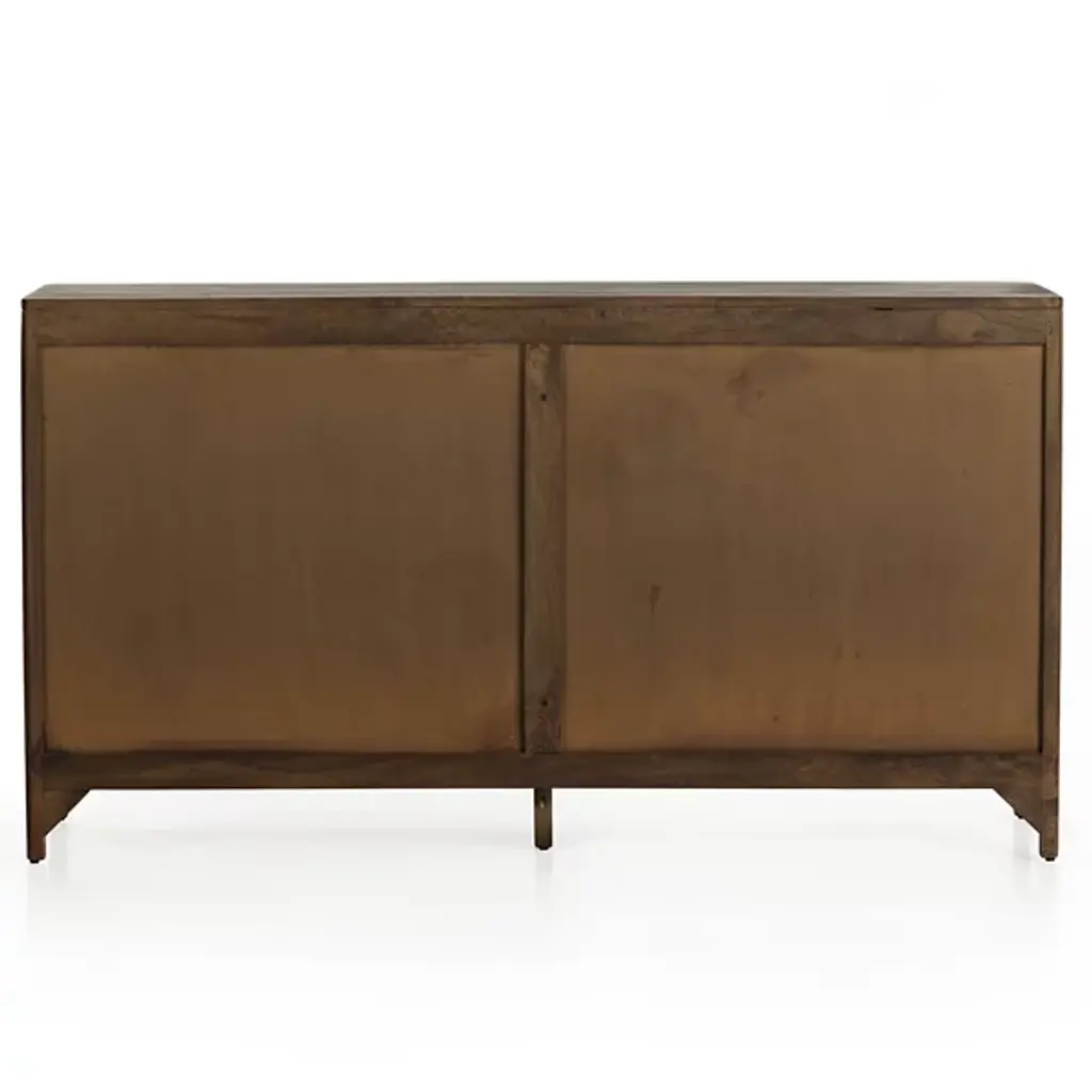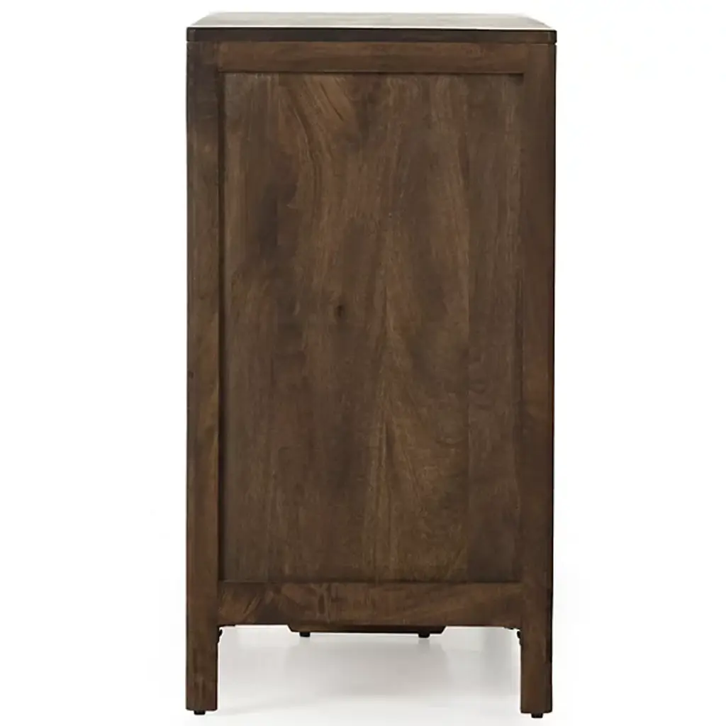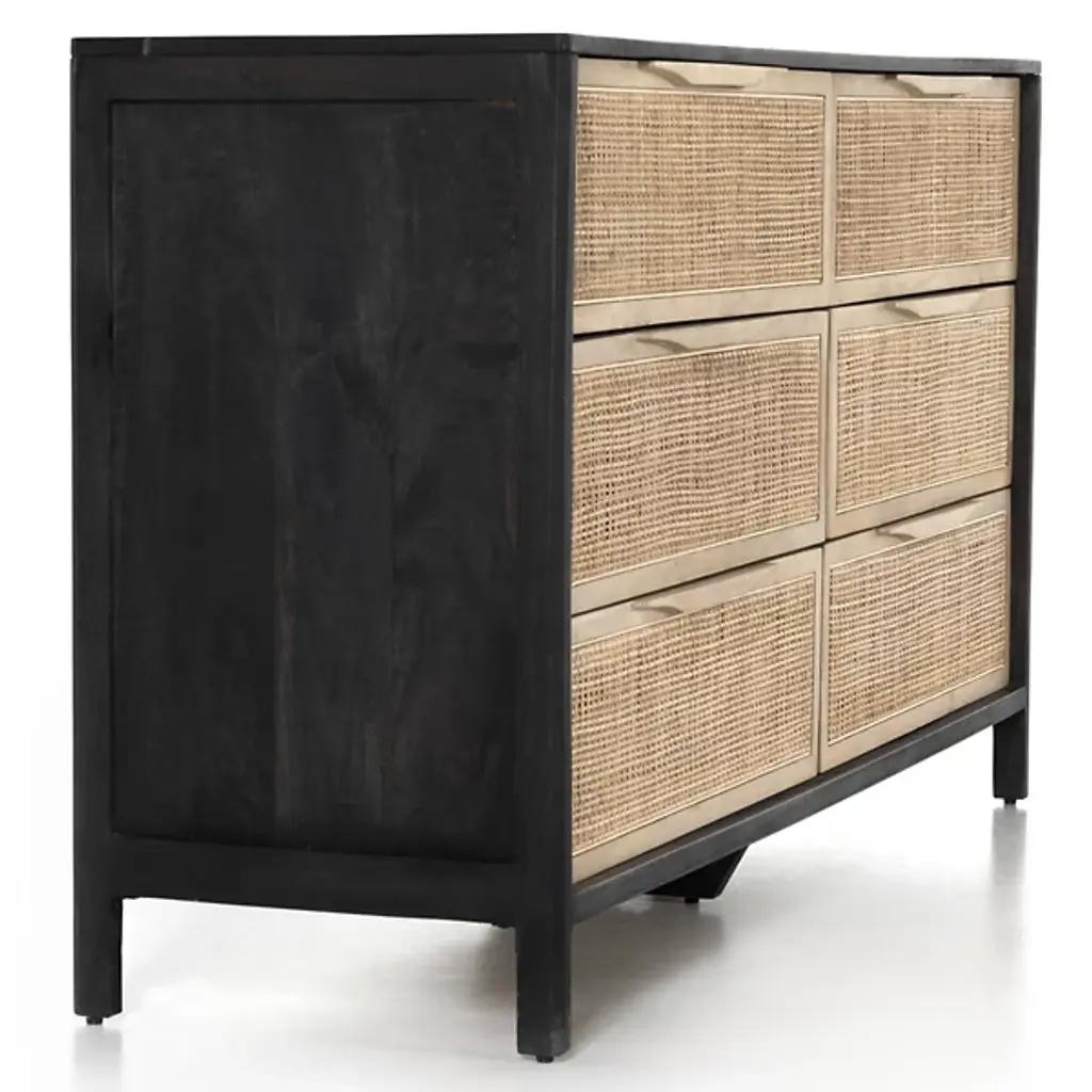 Enhance interiors with the rustic modern intricacy of the Sydney 6 Drawer Dresser from Four Hands. A robust rectangular construction rising from four short legs and a central fin, it uses durable mango wood to enclose six drawers fashioned from woven cane. The grid pattern of the drawer faces features just enough variation to add a welcome natural presence, while the naturally-grained surface of the frame housing captures attention, easing into a cohesive character.