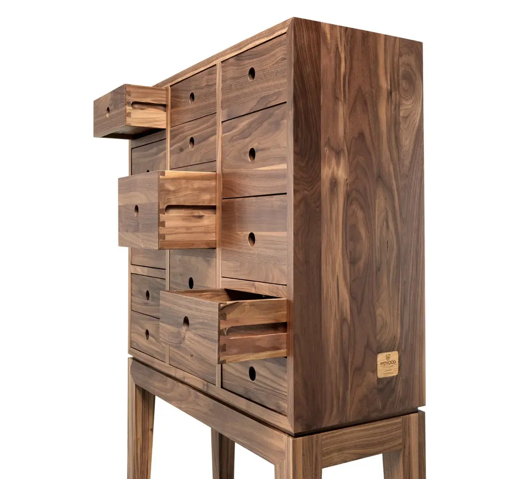 Very elegant timeless Apothecary style chest of drawers cabinet that provides a practical storage space for dining rooms and offices.It is composed by drawers of different dimensions and lower shelf.Made entirely in solid wood. You can choose among oak or walnut wood.Packed in a plywood box for a safe shipping .Priced as the walnut model.Please check the oak model price above.