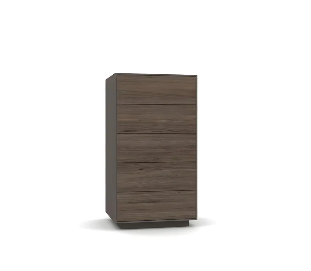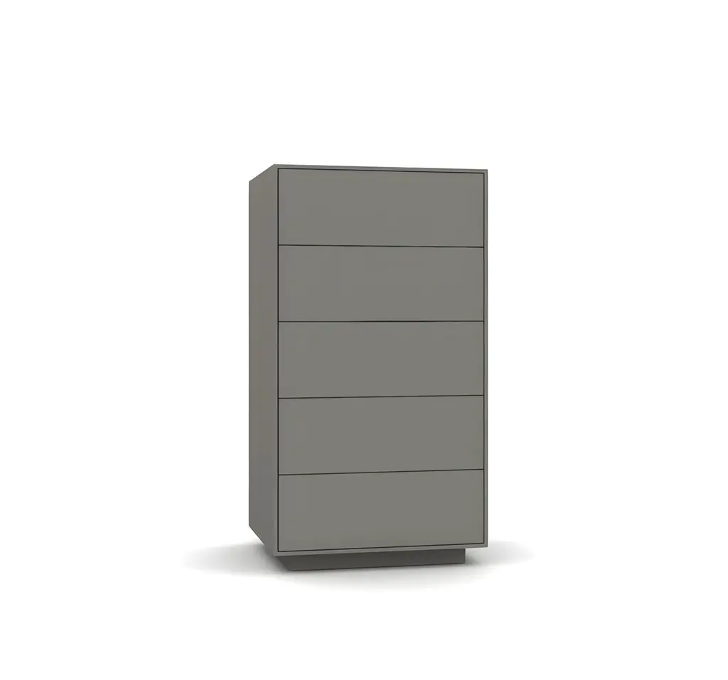 This contemporary piece has references from the 60s with a sleek and high-end design. The structure is lacquered in stone grey with five large drawers in oak veneer. The chest comes with five push-pull drawers and is perfect for home office and bedroom storage. The minimalistic timeless design makes this piece a functional storage option for contemporary interiors. It also has a wooden base.Please contact us if you have any questions about customization and pricing. We will be glad to check with the factory’s technical team if sizes, finishes, and colors can be customized. We do our best to expedite production and to ship and deliver product within the listed lead time, however current lead times might be longer due to global shipping backlog and delays. These delays are out of our control and cannot be a reason to cancel an order.