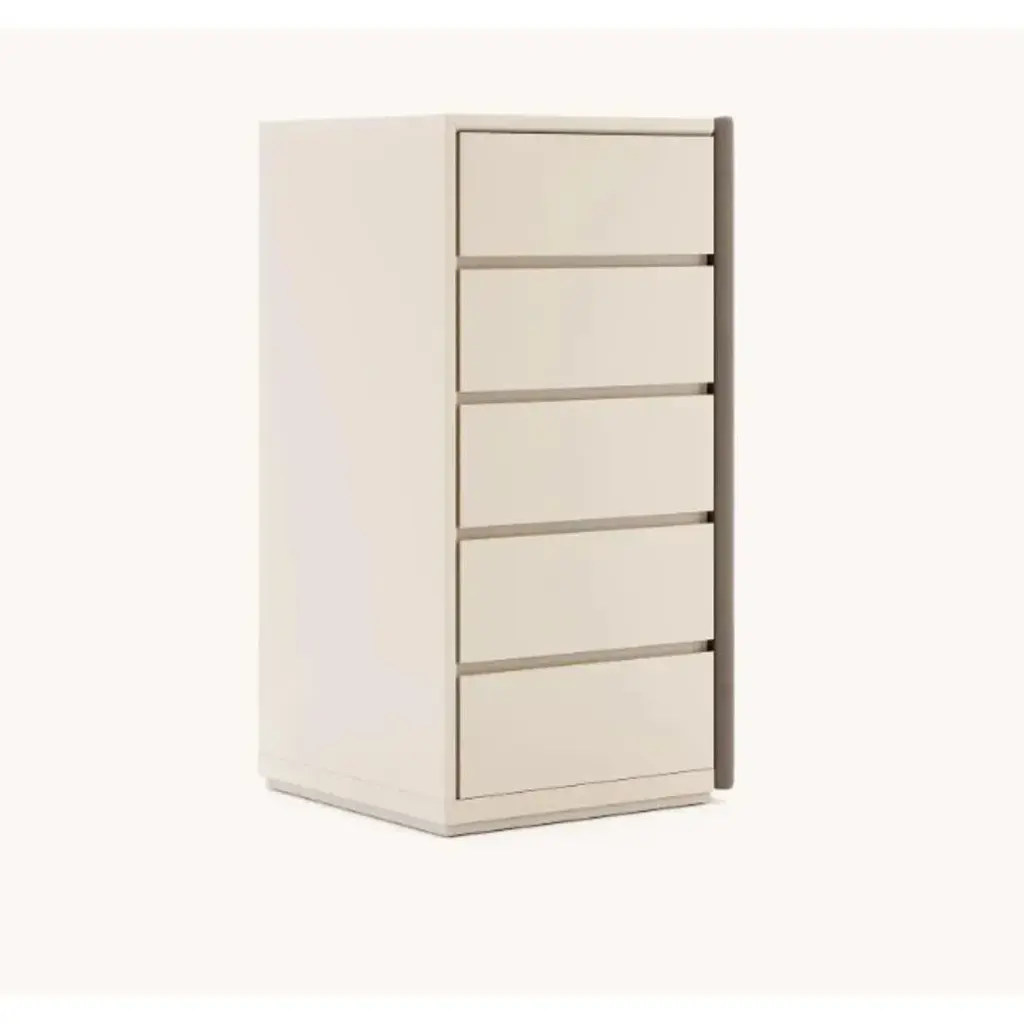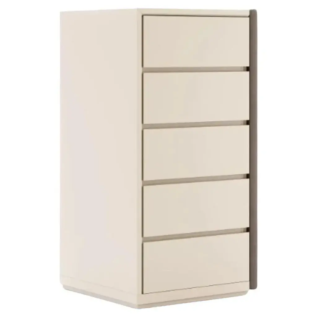 Taylor dresser with 5 drawers by Domkapa Dimensions: W 61 x D 60 x H 120 cm. Materials: Moka lacquered matte, microfiber (Tarn 05). Also available in different materials. Taylor is a set of three-bedroom furniture pieces for cozy decor. Composed of a nightstand, a tall dresser, and a chest of drawers, the structure is mainly made in wood but the highlight goes to one side. This side is upholstered in a fabric of your choosing upgrading the final result to a combination of great taste and exquisite materials. Like all Domkapa’s designs, Taylor bedroom can be customizable as well as be sold separately. Domkapa holds a tremendous passion for detailed stitching, presenting several similarities to the haute-couture philosophy focused on the value of a “made by hand”.
