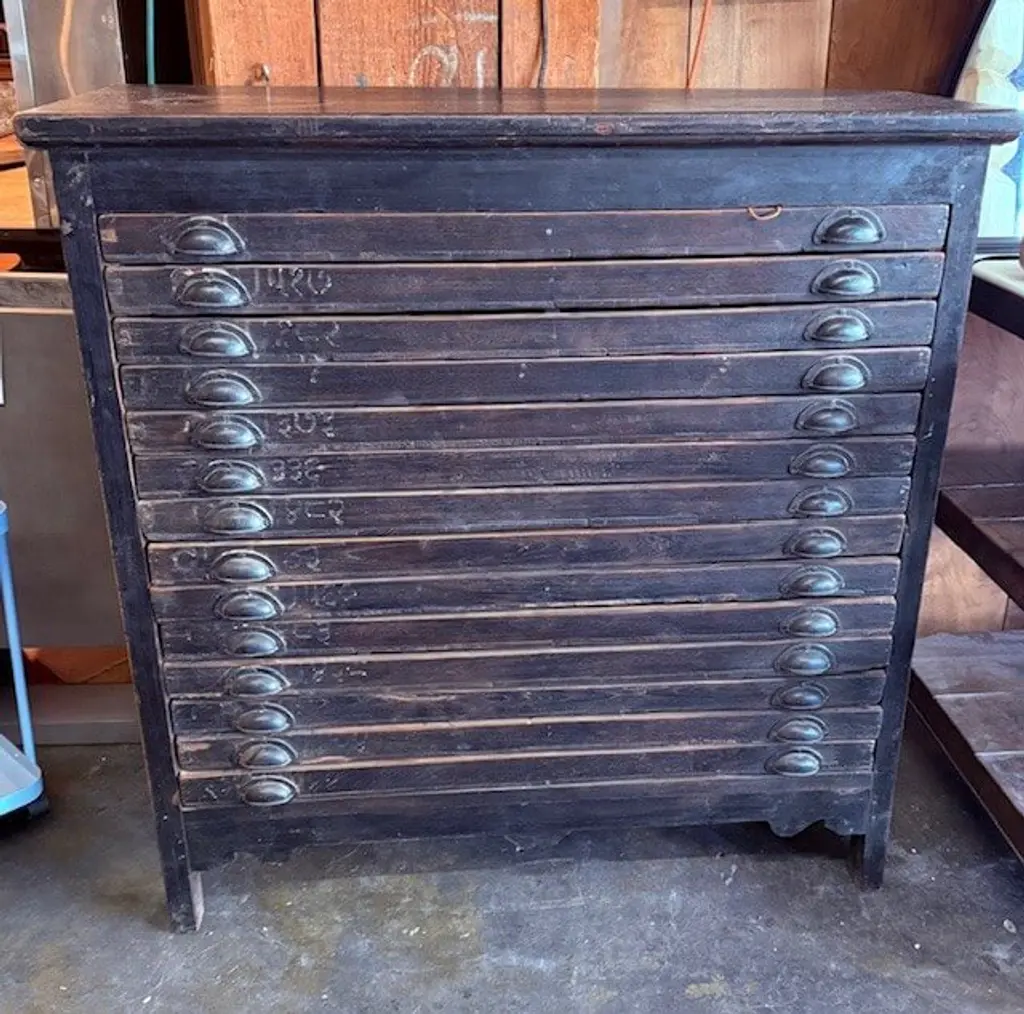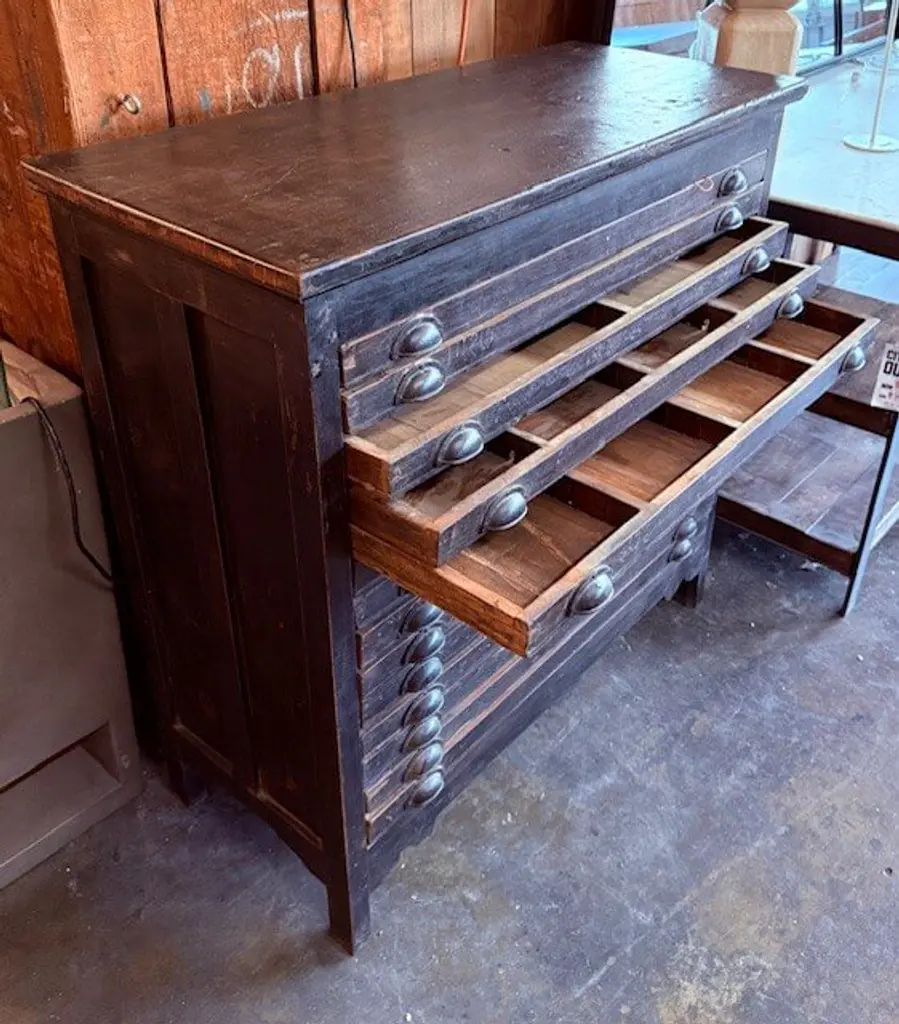 This handcrafted teak chest showcases the natural wear and age of the wood and features 15 drawers for generous storage of small items.Only available at the City Home Outlet in Portland, OR. Please note that all Outlet items are sold as-is and are final sale. Contact us to learn more about this item and to arrange for local pickup or delivery in the Portland metro area.