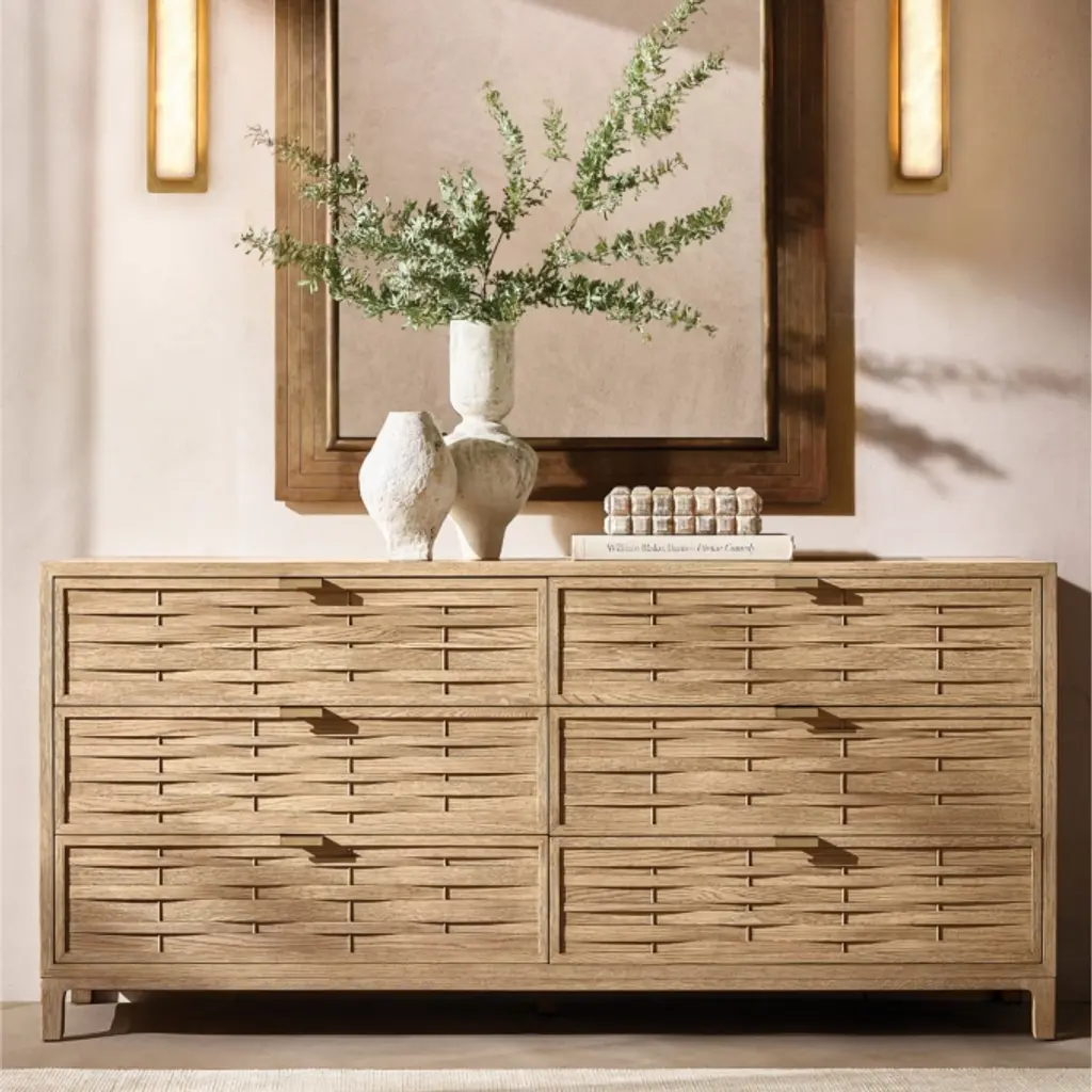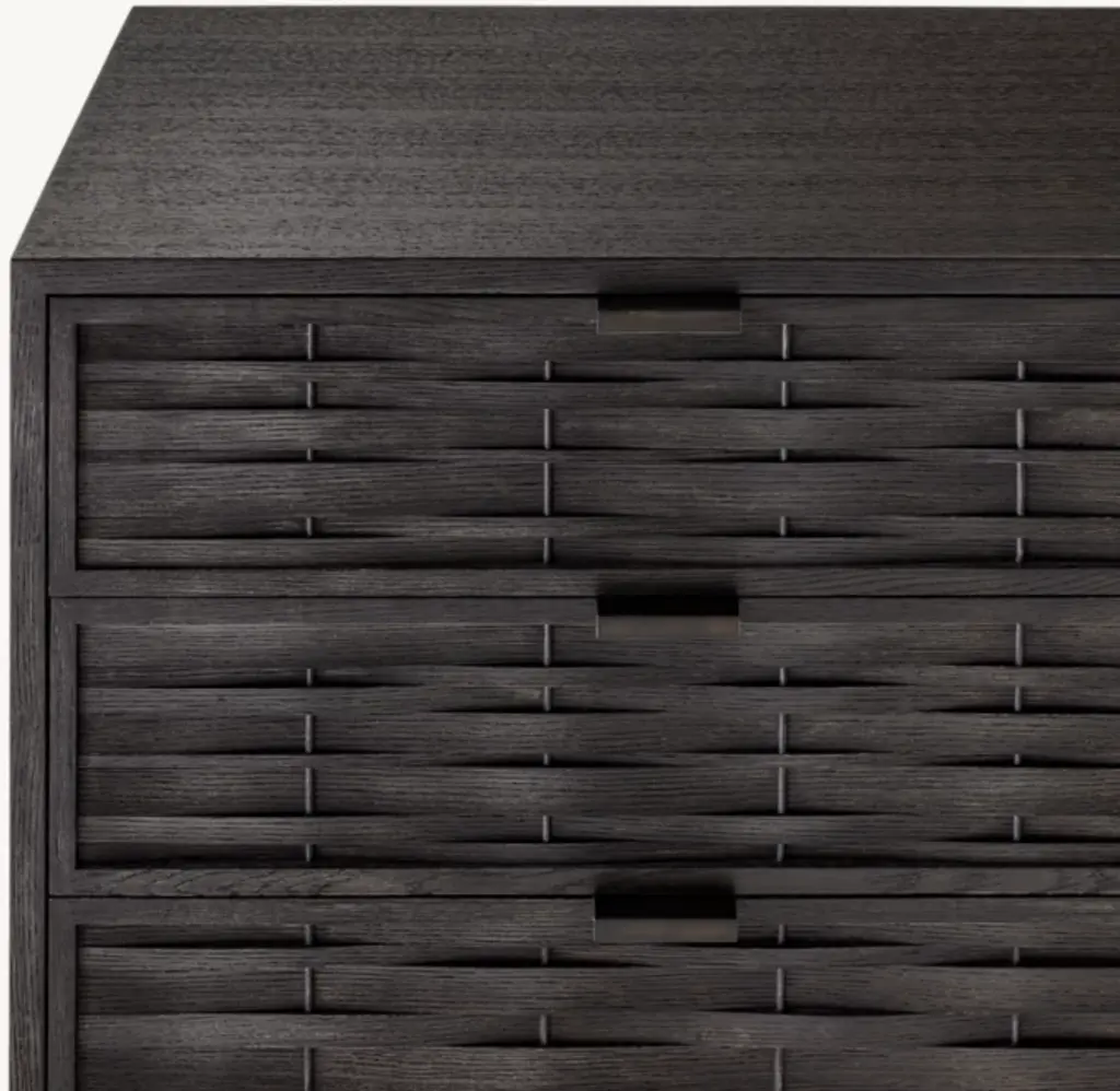 Tessere by the Van Thiels is a contemporary homage to the iconic woven-front furniture designs of midcentury American designer Edward Wormley. American white oak strips are hand woven in a basketweave pattern and encased in a meticulously crafted frame. Fitted with tonal edge-pull hardware and resting atop high legs, the geometric silhouette imparts a striking yet timeless aesthetic. SHOP THE ENTIRE COLLECTION