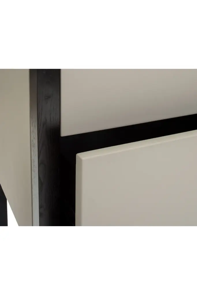 Textured faux leather and solid Ash work in harmony to create this modern chest of drawers. the cubed frame gives substance and with two ample drawers, the Roux is a perfect storage piece for a hall or bedroom.(When placing directly onto the carpet, please use a continuous adhesive strip felt pad underneath the wooden frame to protect the carpet. Felt is not provided).