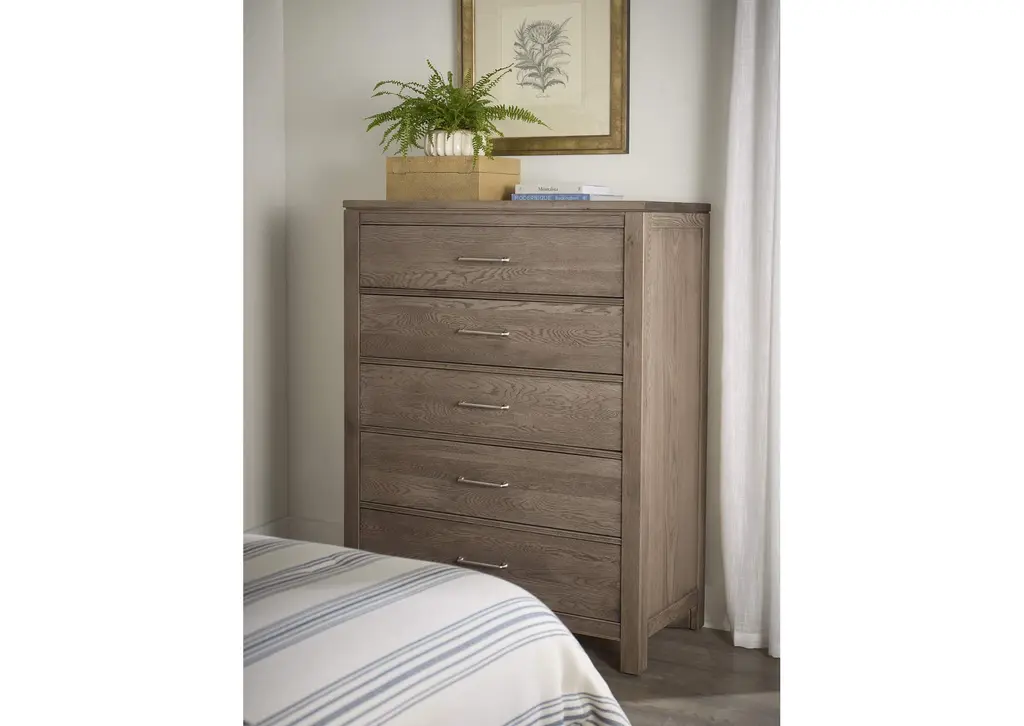 5 drawer chest features a modern reveal beneath the top and classic beaded rails; blending contemporary and traditional design Weight 115.000 lbs. (51.75kgs.)