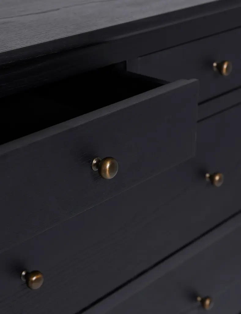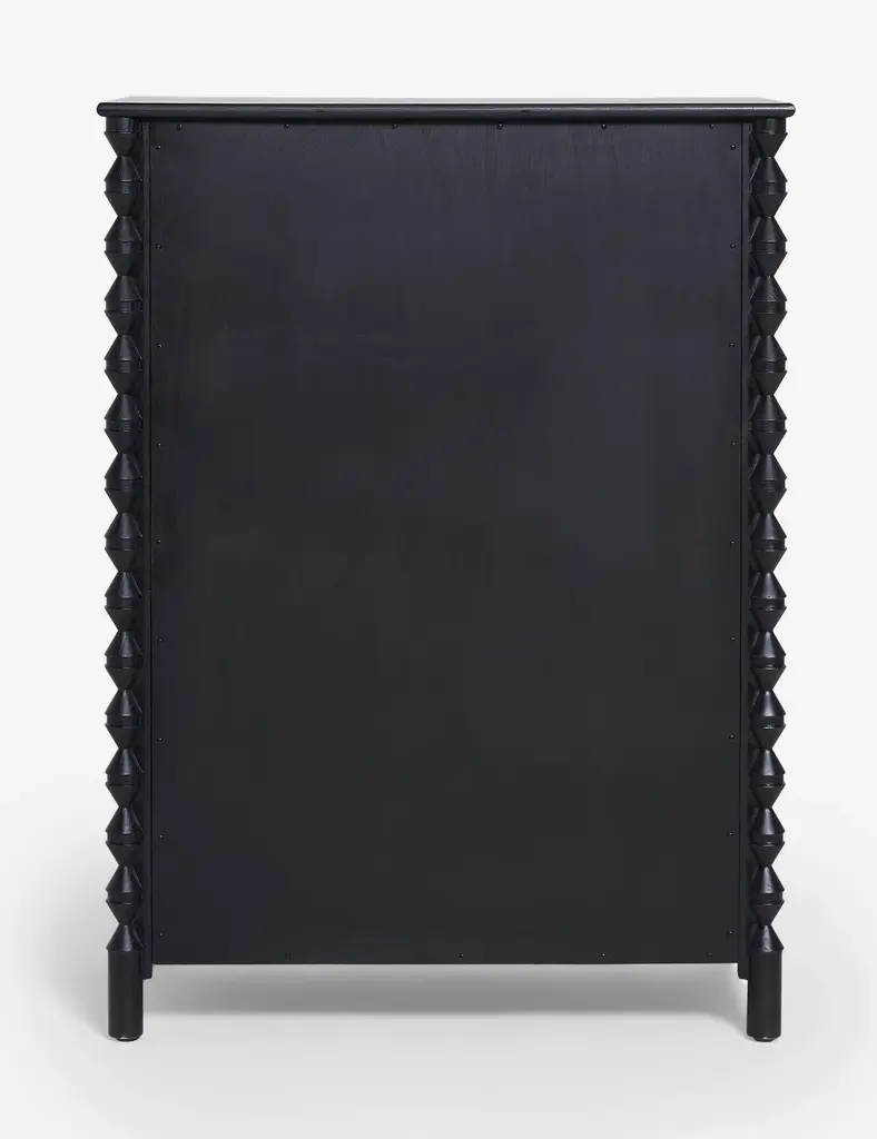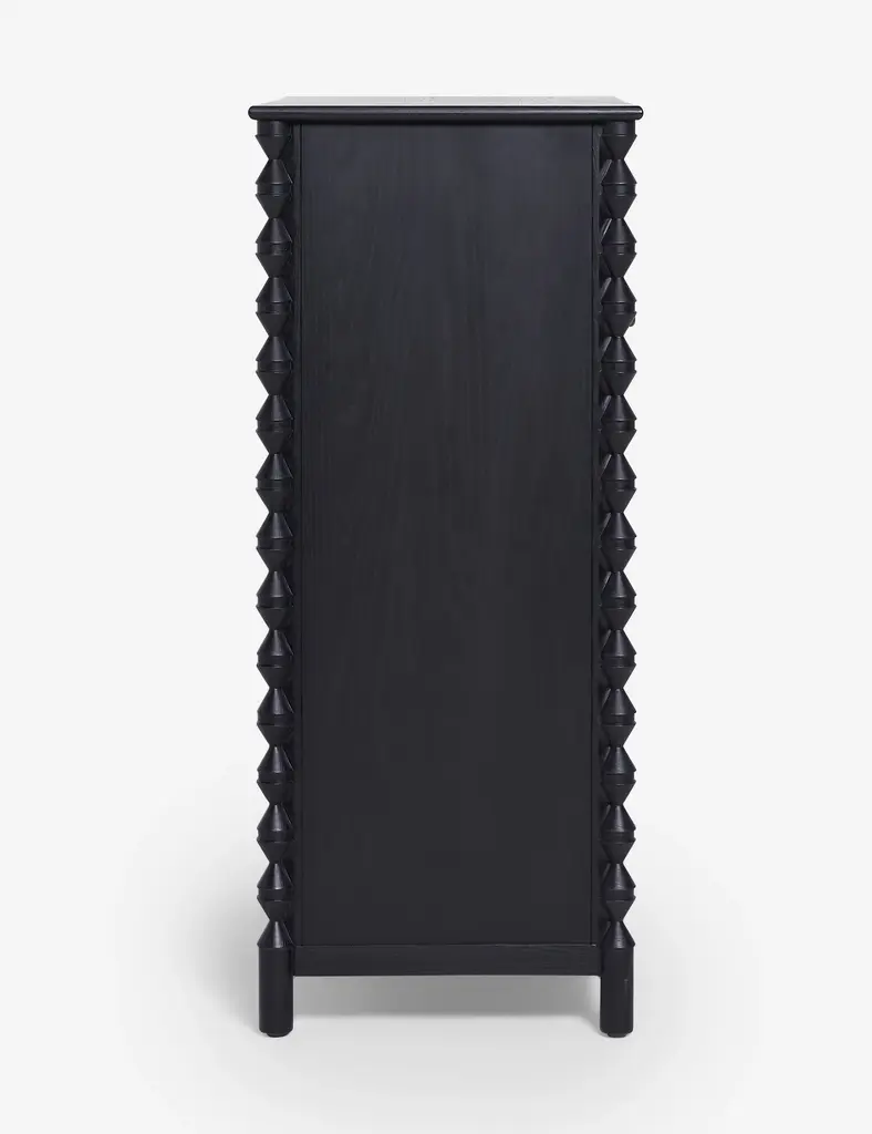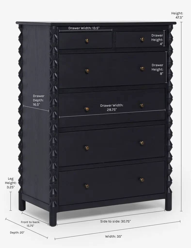 Spacious bedroom storage gets a compact footprint in this tall dresser from the exclusive Ginny Macdonald collection for Lulu and Georgia. Inspired by Ginny's English heritage and fondness for handcrafted details, each piece in the collection fuses her British roots with her California lifestyle. Turned legs add a touch of drama to a tallboy design made from ash wood.