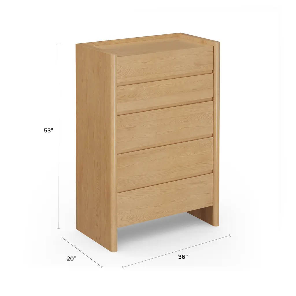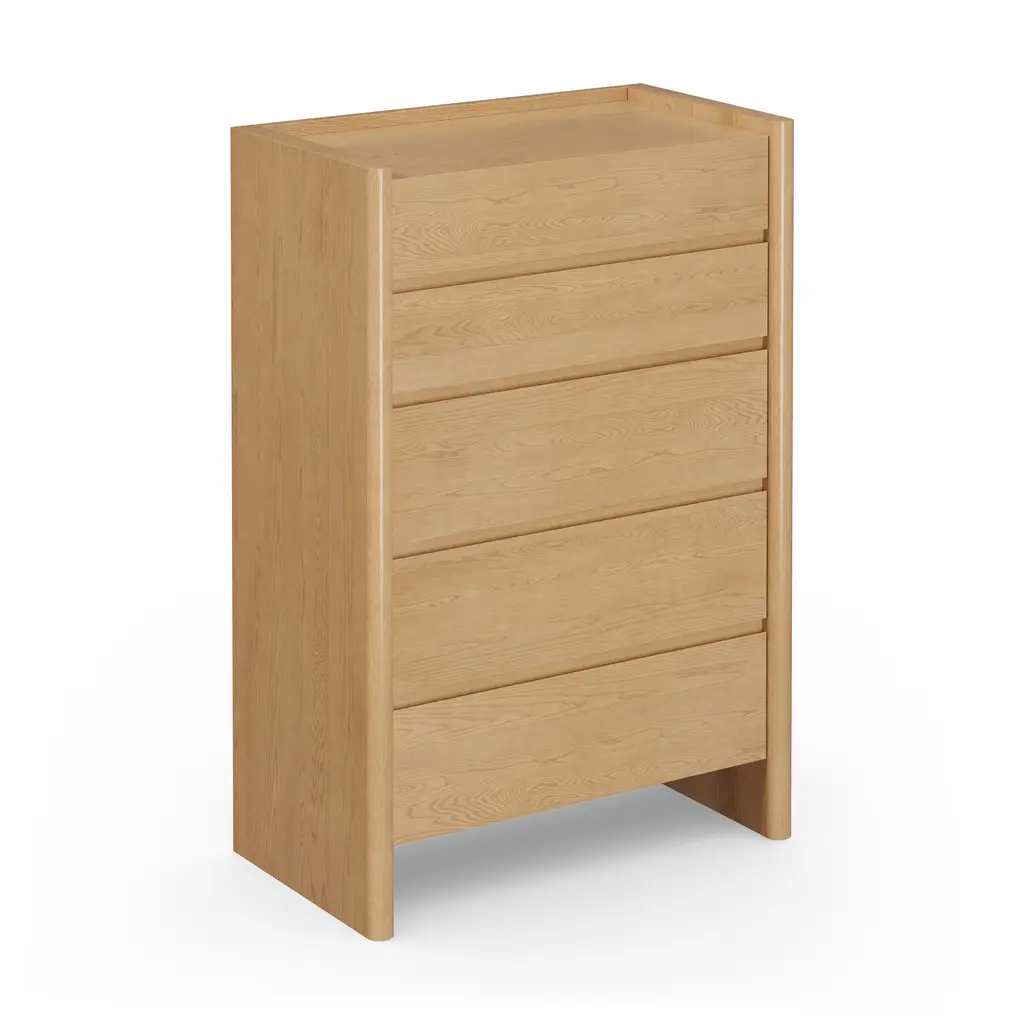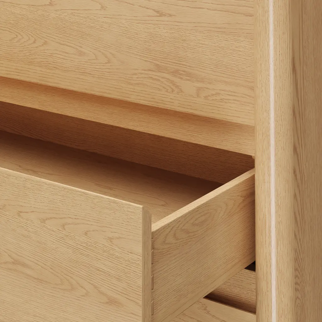The Torme is characterized by simple lines and thoughtful details. Its five large and deep drawers maximize storage space without compromising on style, and its softly rounded edges are subtle but impactful. The Torme chest is a functional, beautiful addition to any space (but especially moody Norwegian studies).
