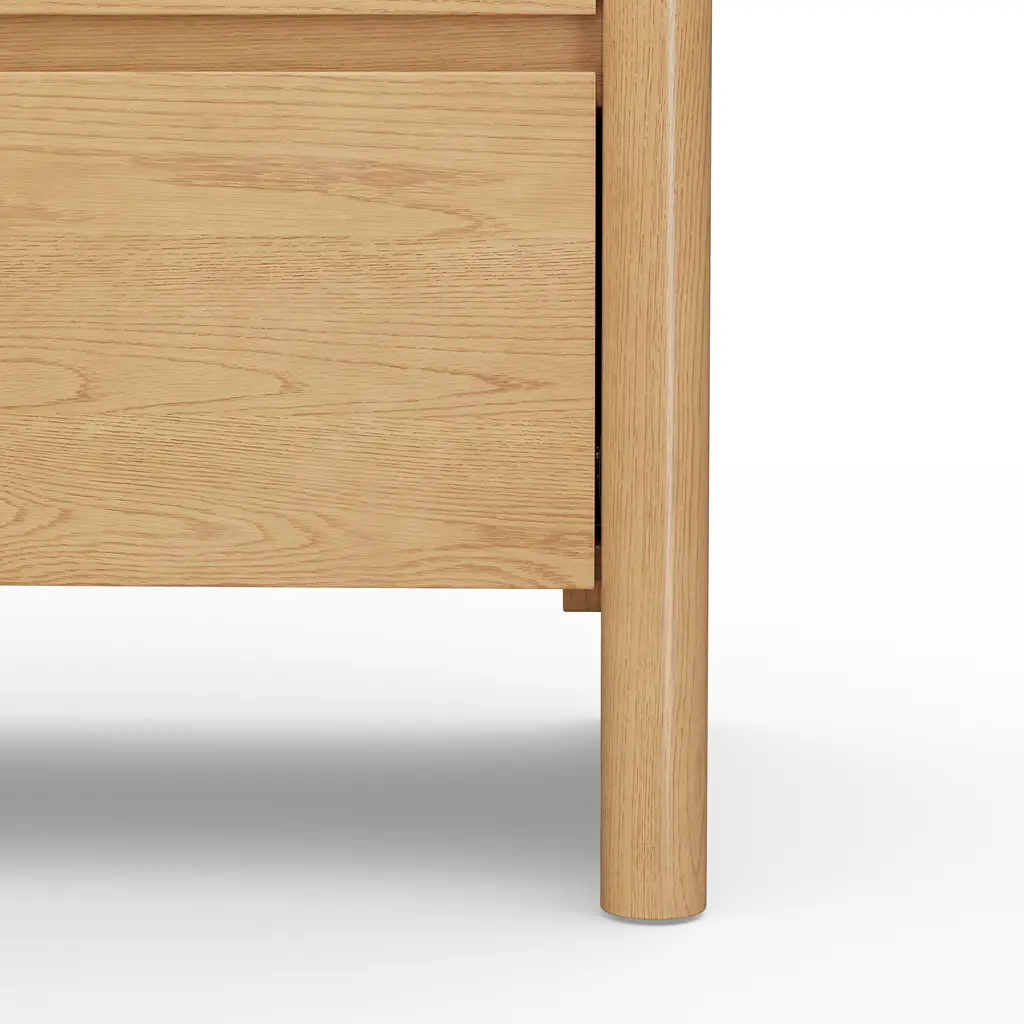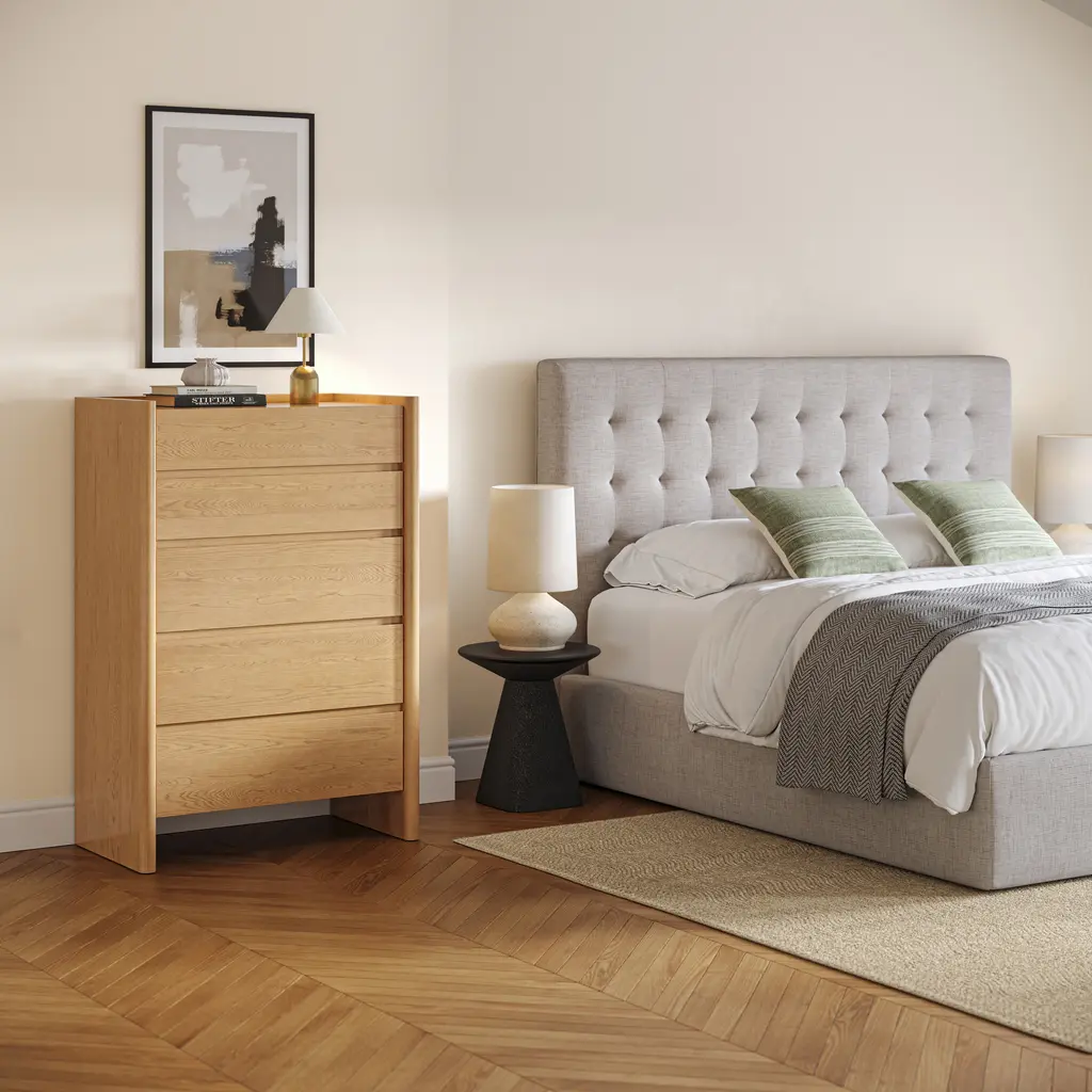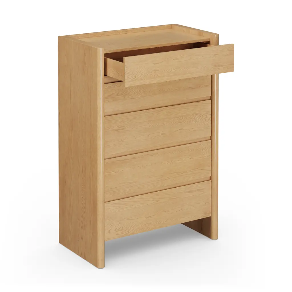 The Torme is characterized by simple lines and thoughtful details. Its five large and deep drawers maximize storage space without compromising on style, and its softly rounded edges are subtle but impactful. The Torme chest is a functional, beautiful addition to any space (but especially moody Norwegian studies).